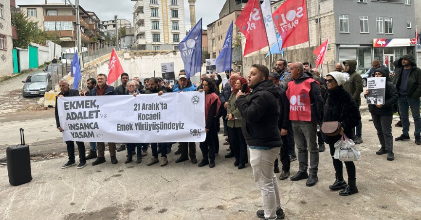 SOL Parti Kocaeli İl Örgütü, Dilovası’nda yanan ve 7 emekçinin can verdiği farika önündeki “Ekmek, adalet, insanca yaşam” sloganlı basın açıklamasında başka bir dünyanın mümkün olduğuna dikkat çekip, “Emeğin Türkiye’sini birlikte kuralım” çağrısında bulundu