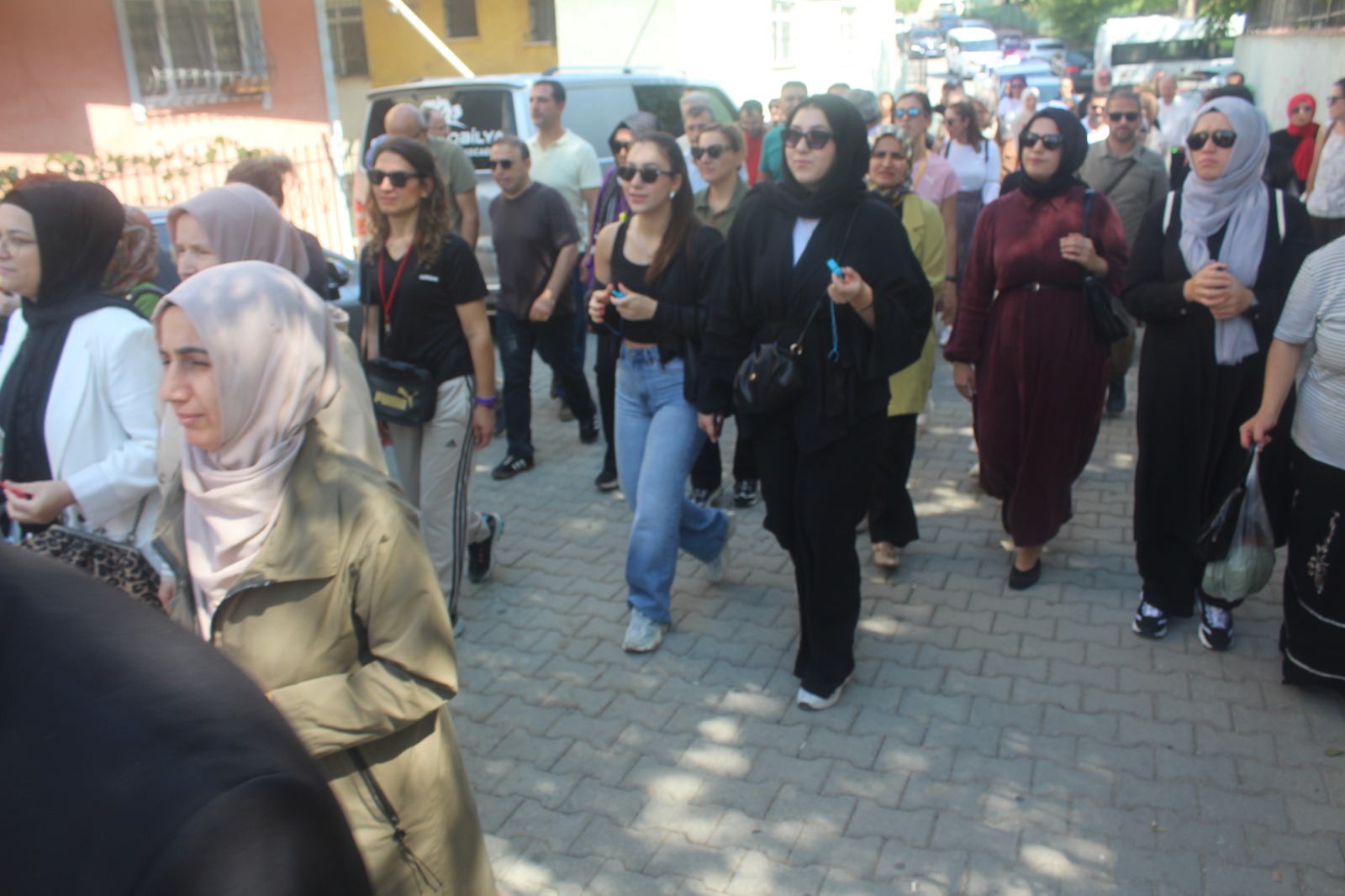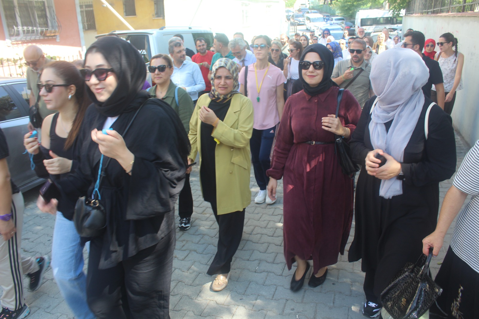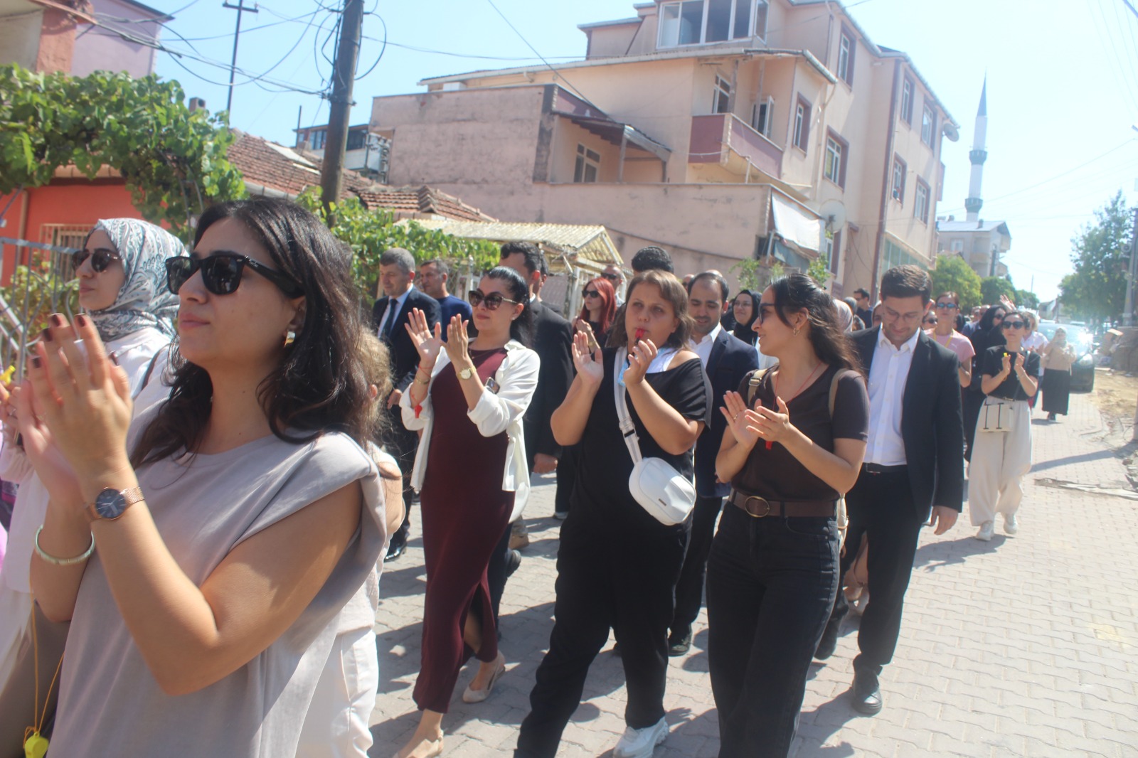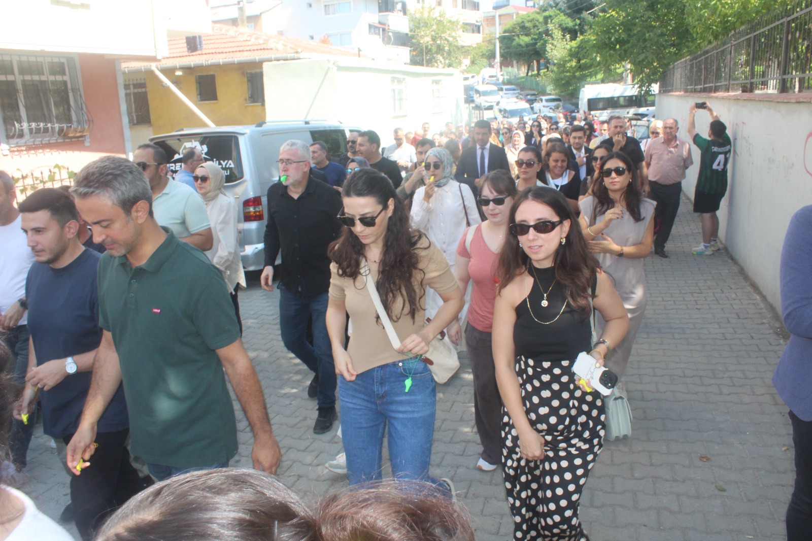 Topluluk yürüyüş boyunca alkışlar ve düdükler eşliğinde, “Darıca uyuma öğretmenine sahip çık”, “Öğretmene uzanan elller kırılsın”, “Öğretmene şiddete hayır”, “Adalet uyuma öğretmene sahip çık” sloganları attı. İlçe Emniyet Müdürlüğü ekiplerinin geniş güvenlik önlemi aldığı yürüyüşü Darıca İlçe Emniyet Müdürü Vedat İşleyen de takip etti.