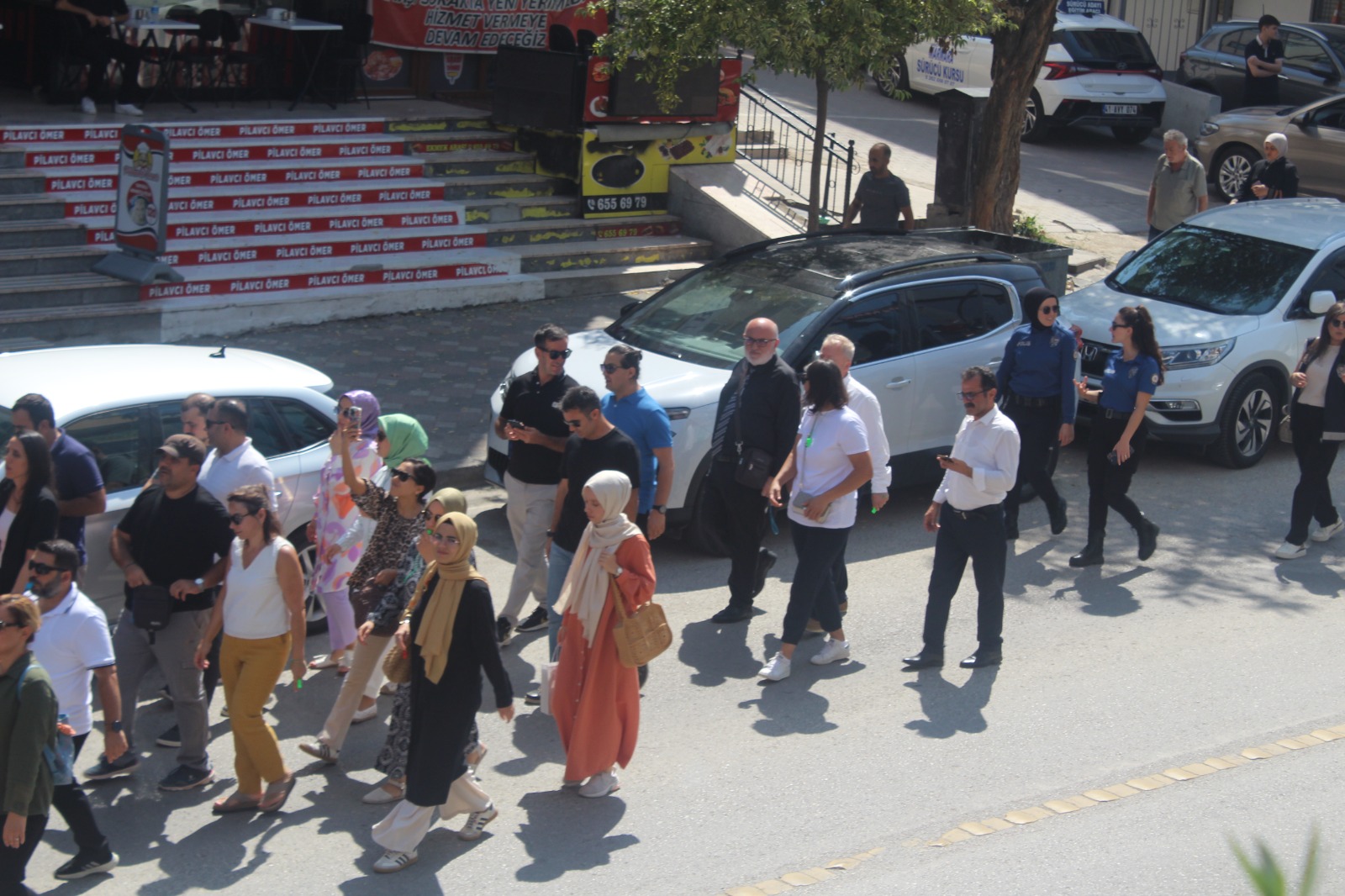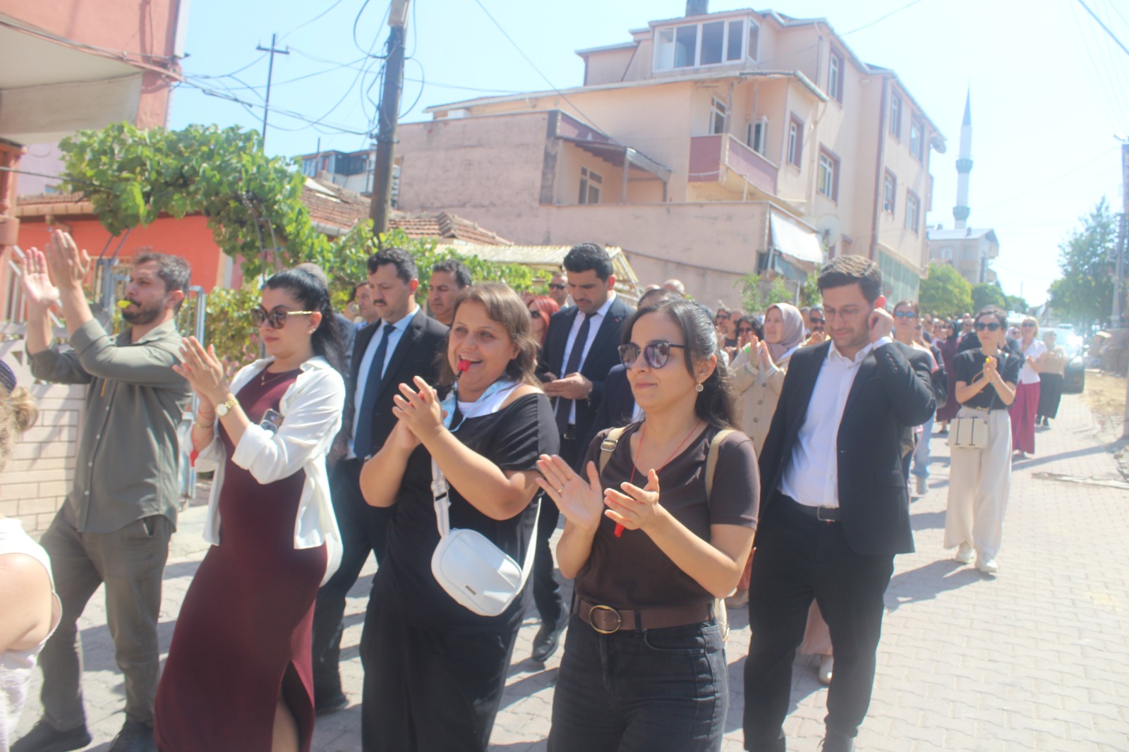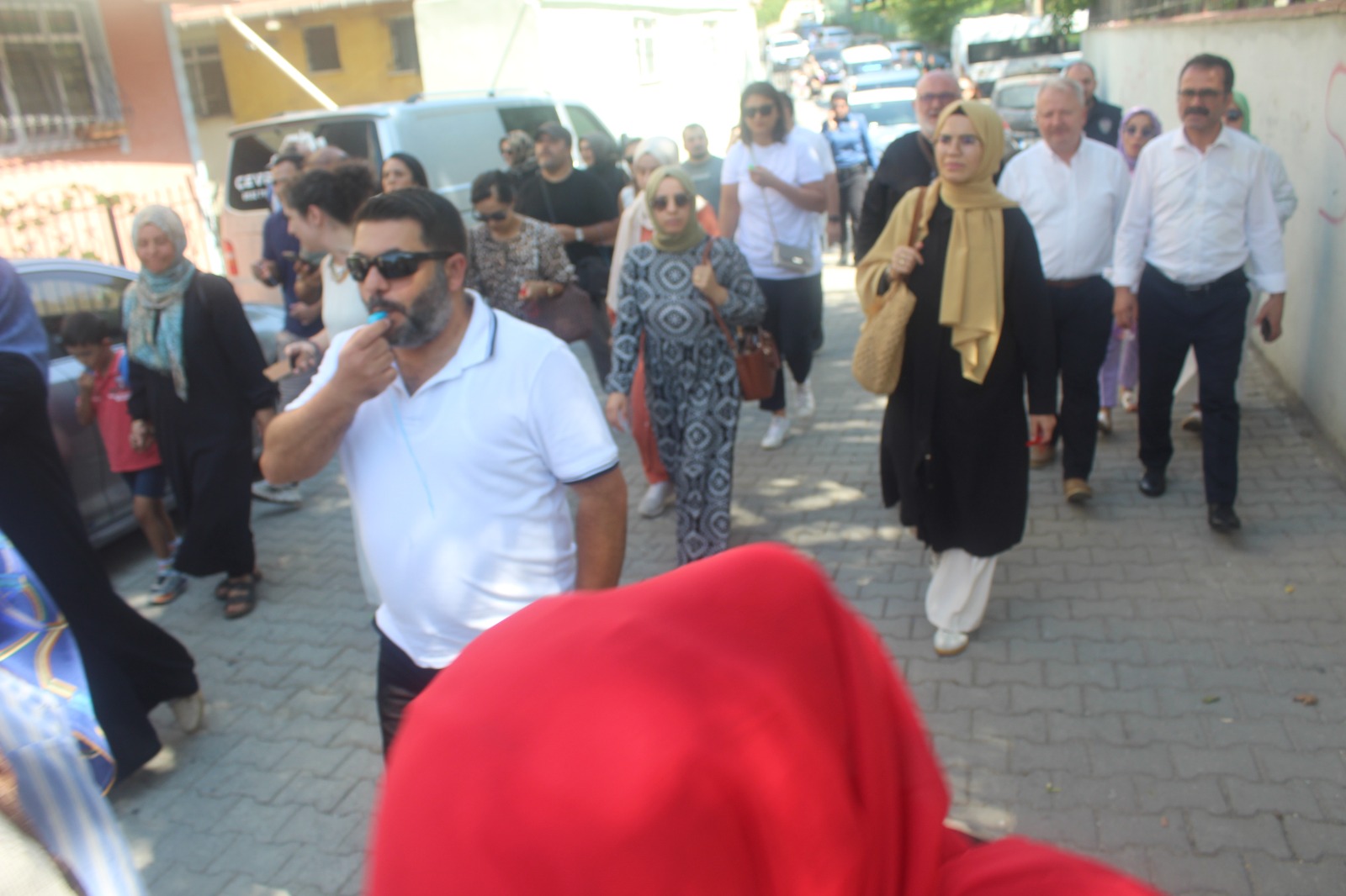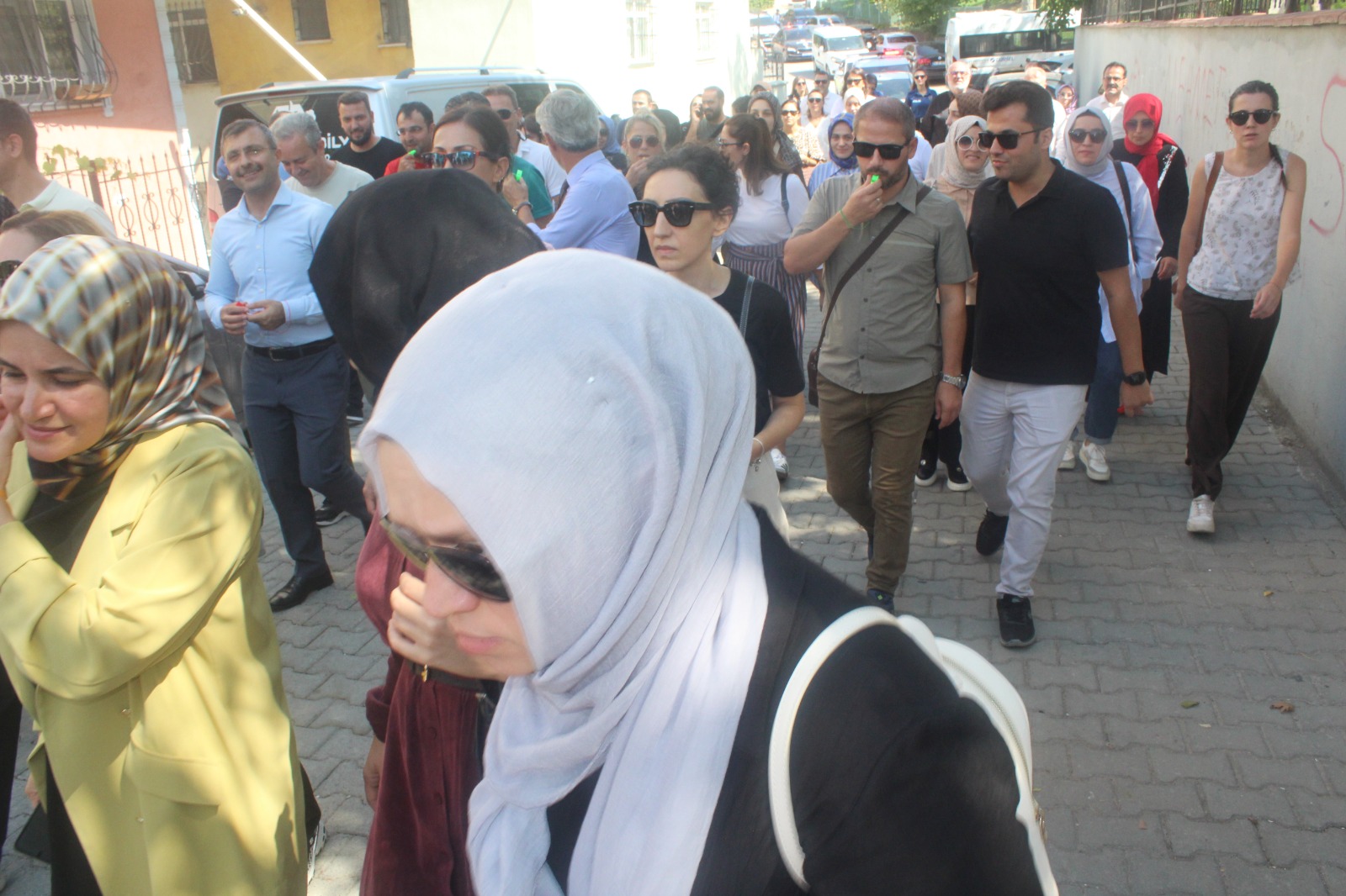 Topluluk yürüyüş boyunca alkışlar ve düdükler eşliğinde, “Darıca uyuma öğretmenine sahip çık”, “Öğretmene uzanan elller kırılsın”, “Öğretmene şiddete hayır”, “Adalet uyuma öğretmene sahip çık” sloganları attı. İlçe Emniyet Müdürlüğü ekiplerinin geniş güvenlik önlemi aldığı yürüyüşü Darıca İlçe Emniyet Müdürü Vedat İşleyen de takip etti.