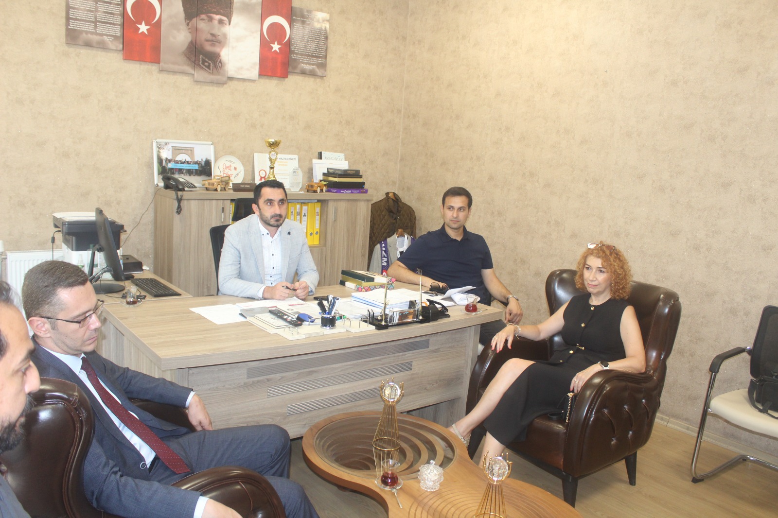 Eğitim Bir-Sen Gebze Temsilciliği Başkanı Fazlı Yağmur, Türk Eğitim-Sen Kocaeli 2 No’lu Şube Başkanı Kürşad Türkcan, Eğitim-Sen Gebze Şube Başkanı Sinan Kaya ve Eğitim-İş Kocaeli 2 No’lu Şube Başkanı Adem Eliçora, Hürriyetçi Eğitim-Sen Gebze İlçe Başkanı Hasan Akgül basın açıklaması öncesi Okul Müdürü Ümit Biber’e makamında konuk olup geçmiş olsun dilekleri iletti.