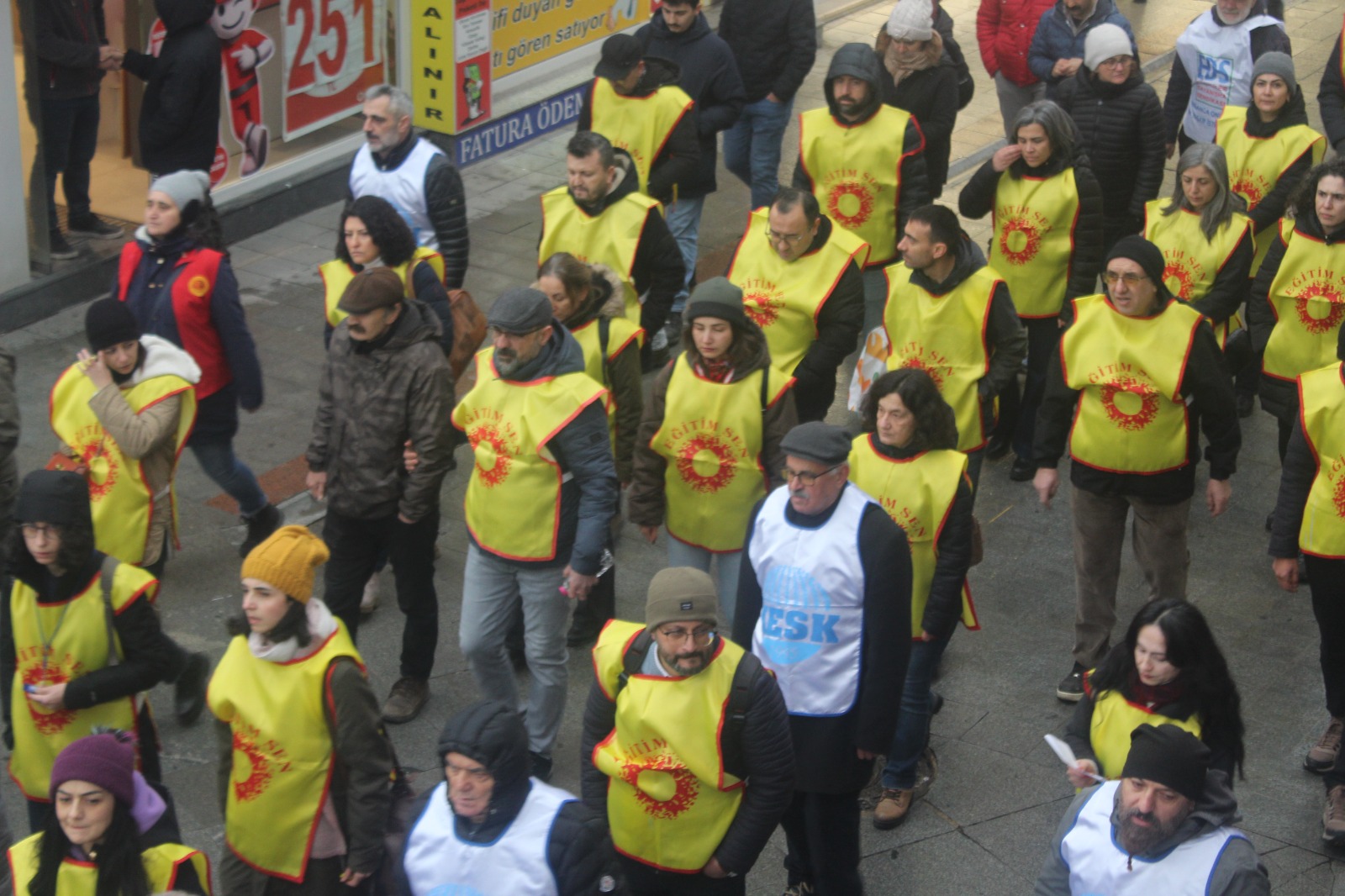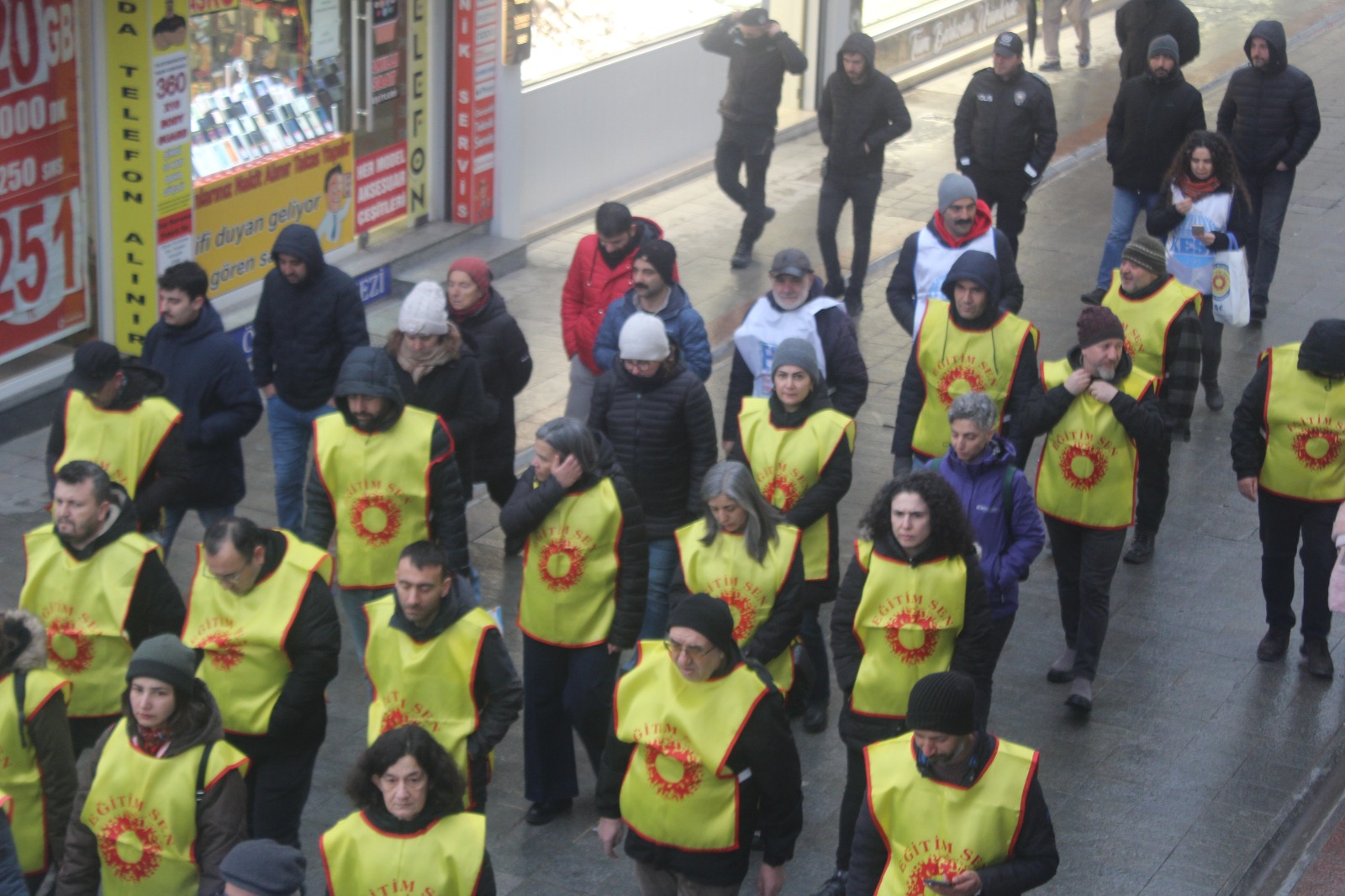 Yürüyüş ve basın açıklaması esnasında; “Savaşa değil eğitime bütçe”, “Emekçiler yürüyor mücadele büyüyor”, “Yaşasın örgütlü mücadelemiz”, “Hükümet vergiyi hortumcudan al” ve benzeri sloganlar atıldı.