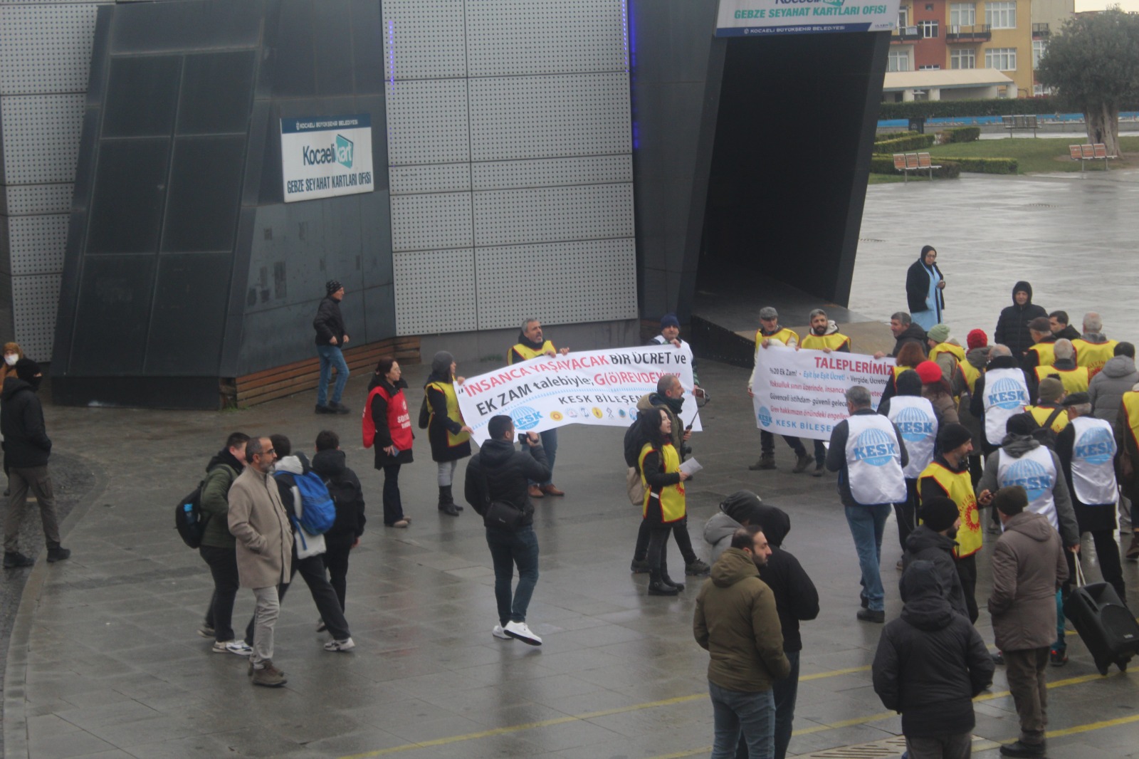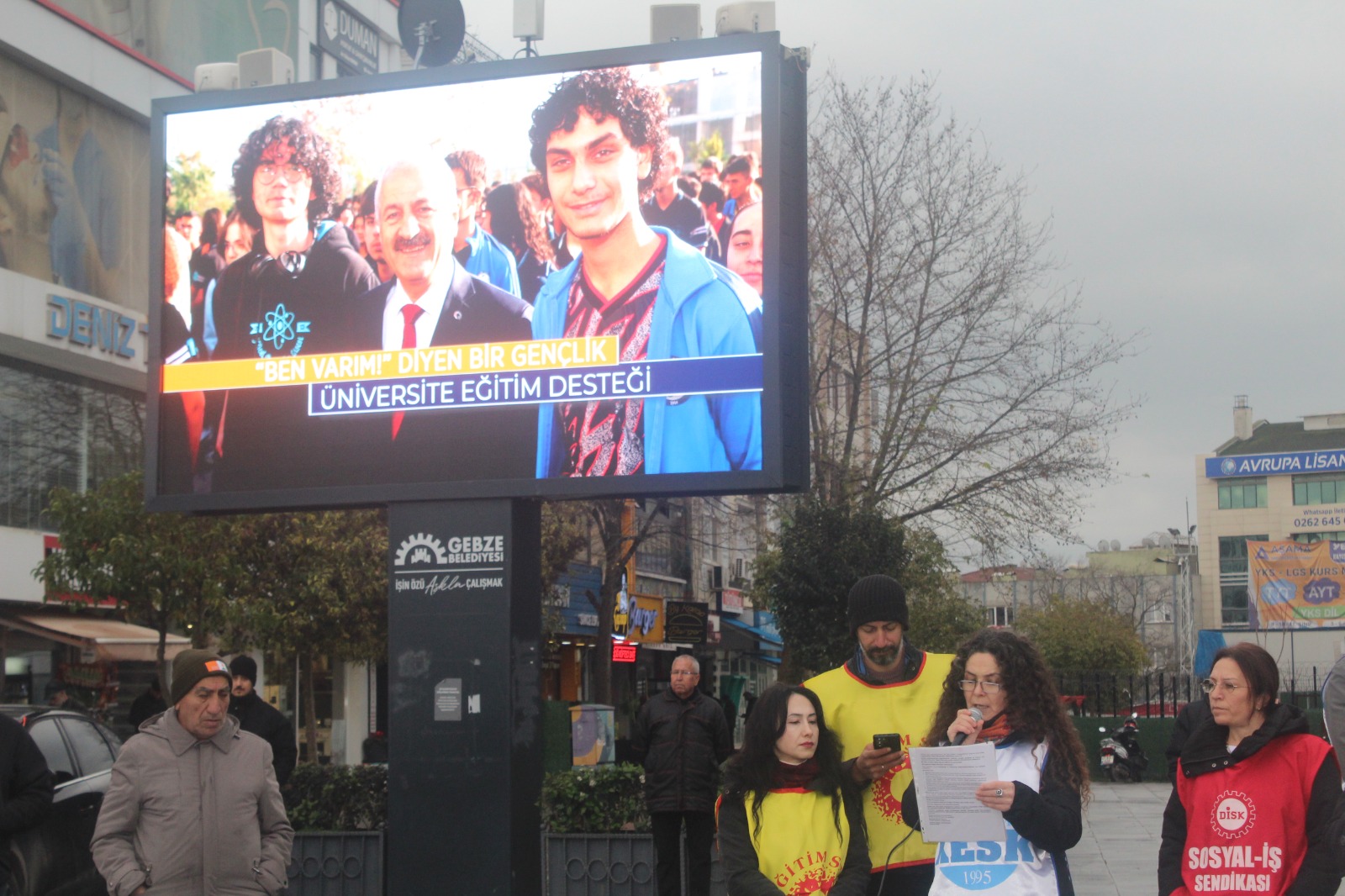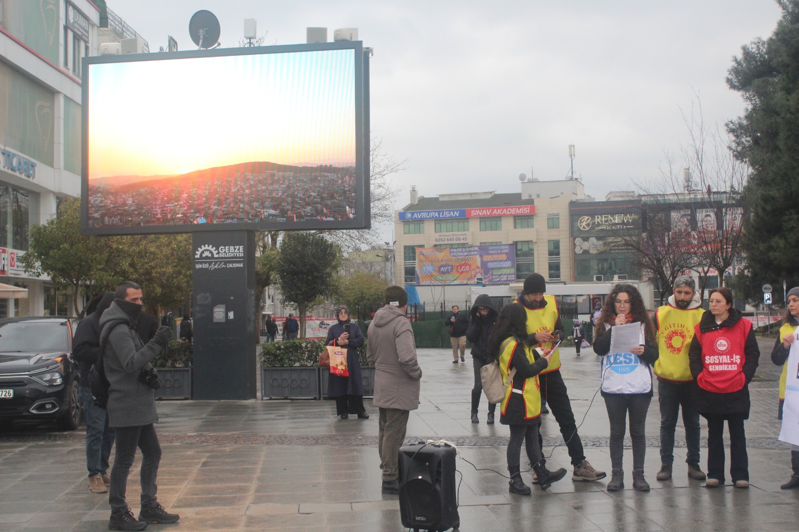 KESK’in ülke geneli iş bırakma eylemi Gebze’de Eğitim-Sen öncülüğünde gerçekleşti. Kent meydanında, Gebze Belediyesi panosunda 2025 raporu reklamları bant, toplumun gerçekleri canlı “yayındaydı. Maaşlara yüzde 20 ek zam, ocak ayı için hemen şimdi istedi
