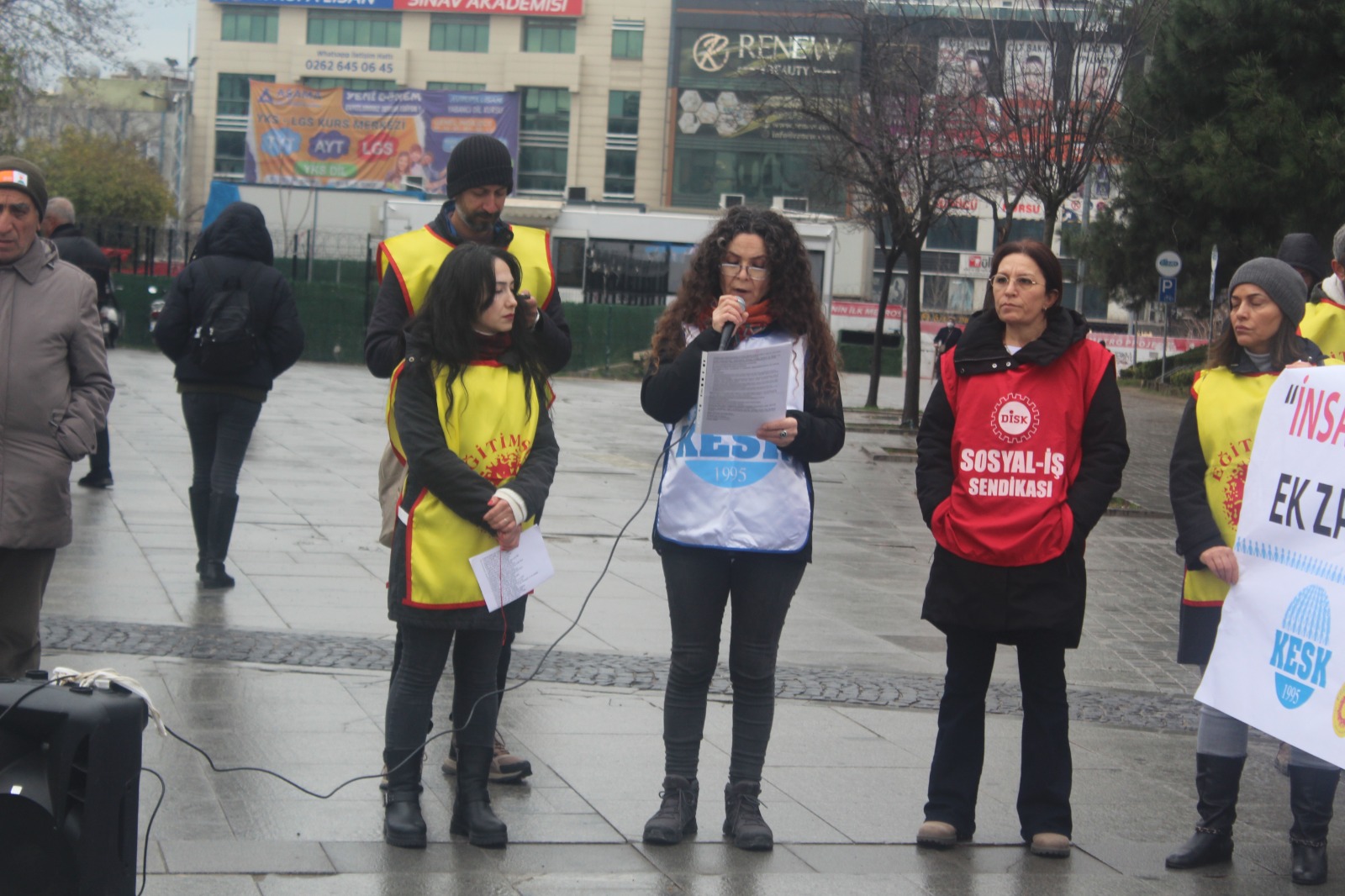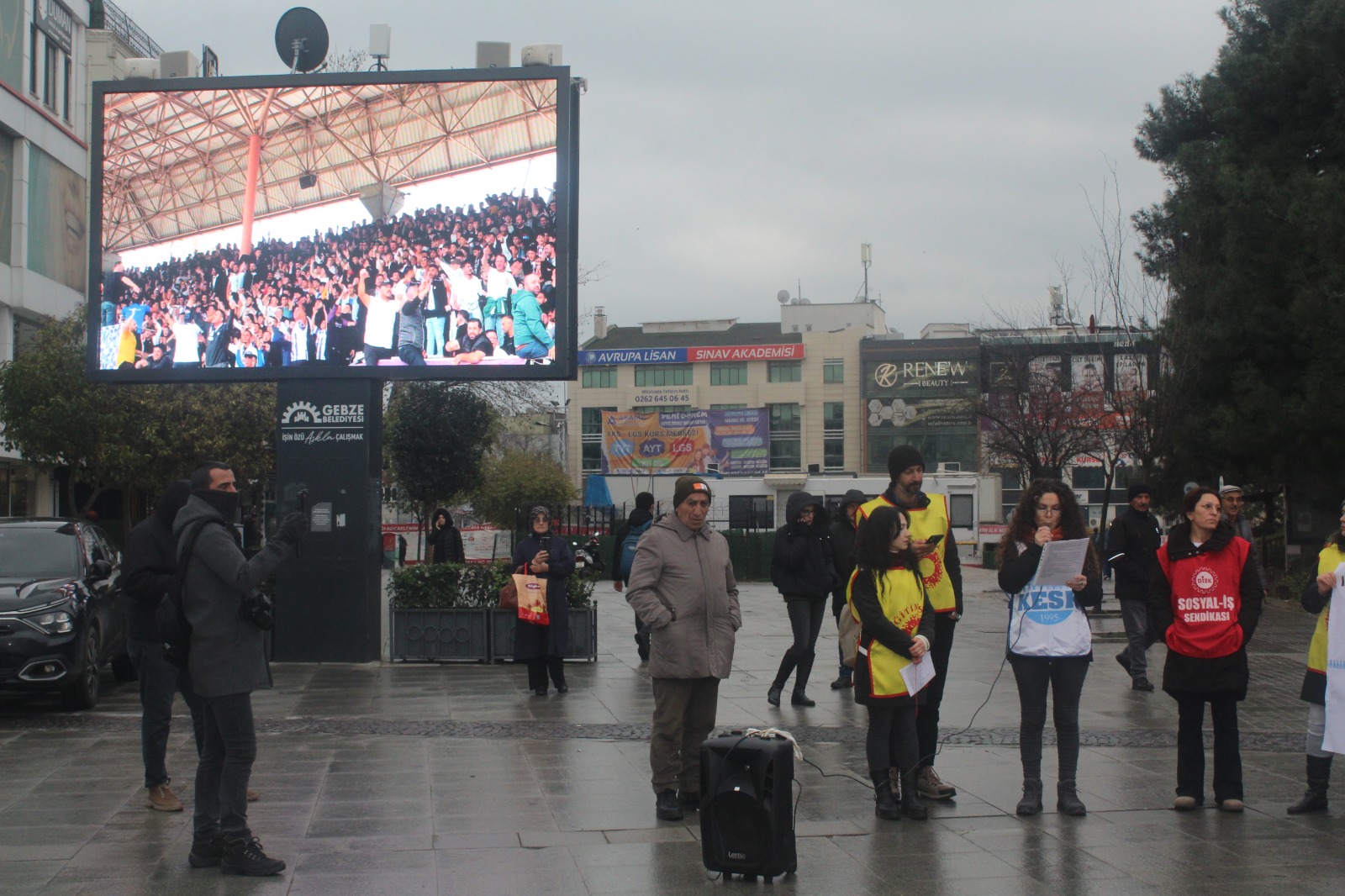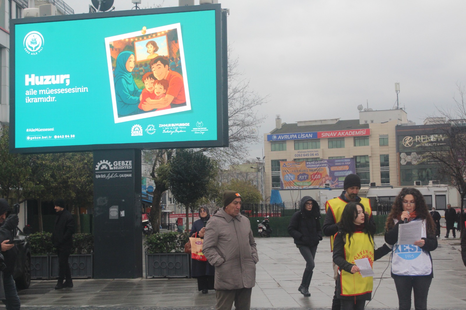KESK’in ülke geneli iş bırakma eylemi Gebze’de Eğitim-Sen öncülüğünde gerçekleşti. Kent meydanında, Gebze Belediyesi panosunda 2025 raporu reklamları bant, toplumun gerçekleri canlı “yayındaydı. Maaşlara yüzde 20 ek zam, ocak ayı için hemen şimdi istedi