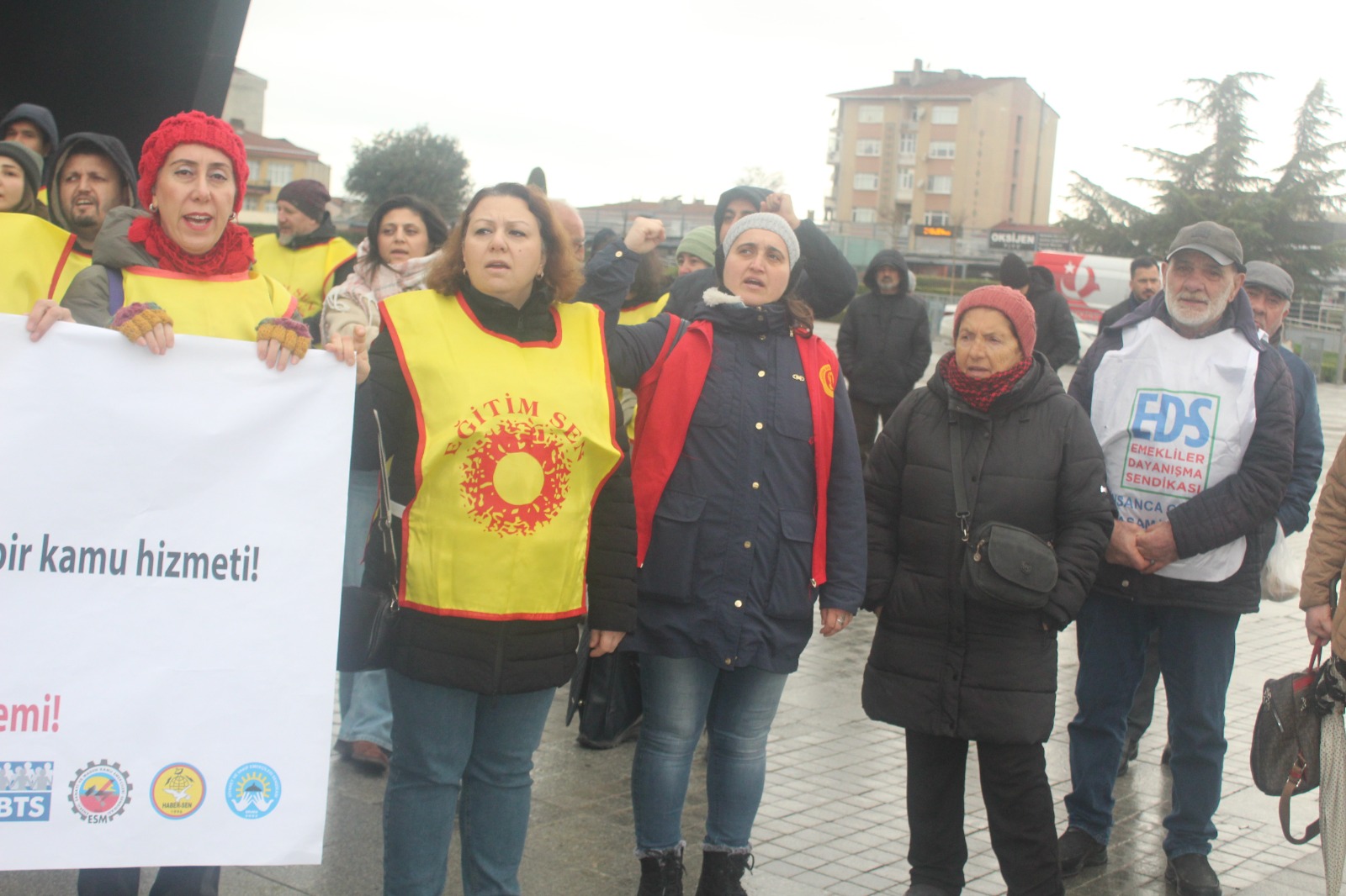 En düşük kamu emekçisi maaşının yoksulluk sınırı üzerine çıkarılmasını, kira, kreş ve yol desteği istiyoruz.”