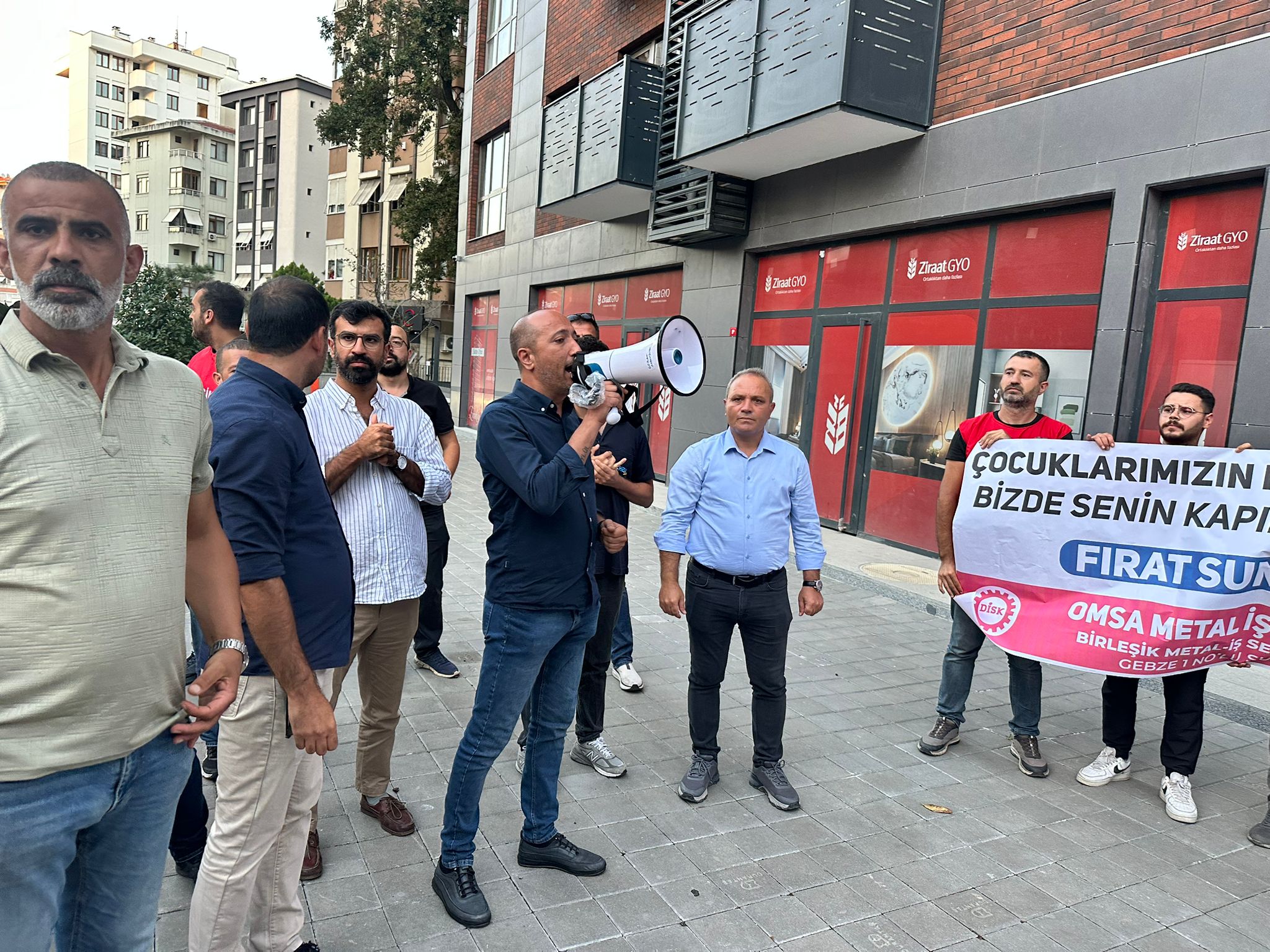 BMİS Gebze 1 No’lu Şube Başkanı Selçuk Çifçi binanın önünde doğaçlama yaptığı açıklamada bir ara etraftan geçen mahalle sakini yurttaşlara atıfla, “Burada yaşayan Fırat Sungur gibi birinin sizi, ‘Artık seni bu fabrikada istemiyoruz’ deyip tazminatta ödemeden işten attığını varsayın. Bir an bunu düşünün. Ne yaparsınız?” diye sordu.