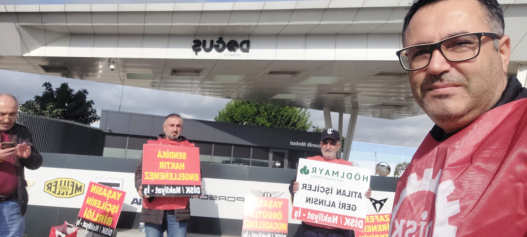 Bu açık hak gaspına ve sendikal saldırıya karşı sendikamız, bugün (17.10.2025) itibarıyla Doğuş Otomotiv önünde direnişe başlamıştır.
