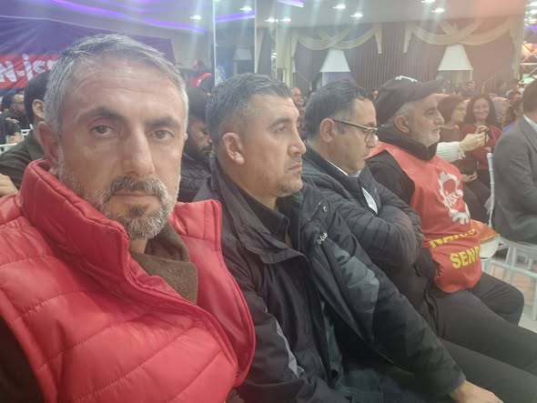 DİSK Genel Başkanı Arzu Çerkezoğlu’nun uçak rötarı nedeniyle geceye katılamadığı öğrenilirken, Çerkezoğlu’nun dayanışma mesajını Birleşik Metal-İş Gebze 1 No’lu Şube Başkanı Selçuk Çifci okudu.