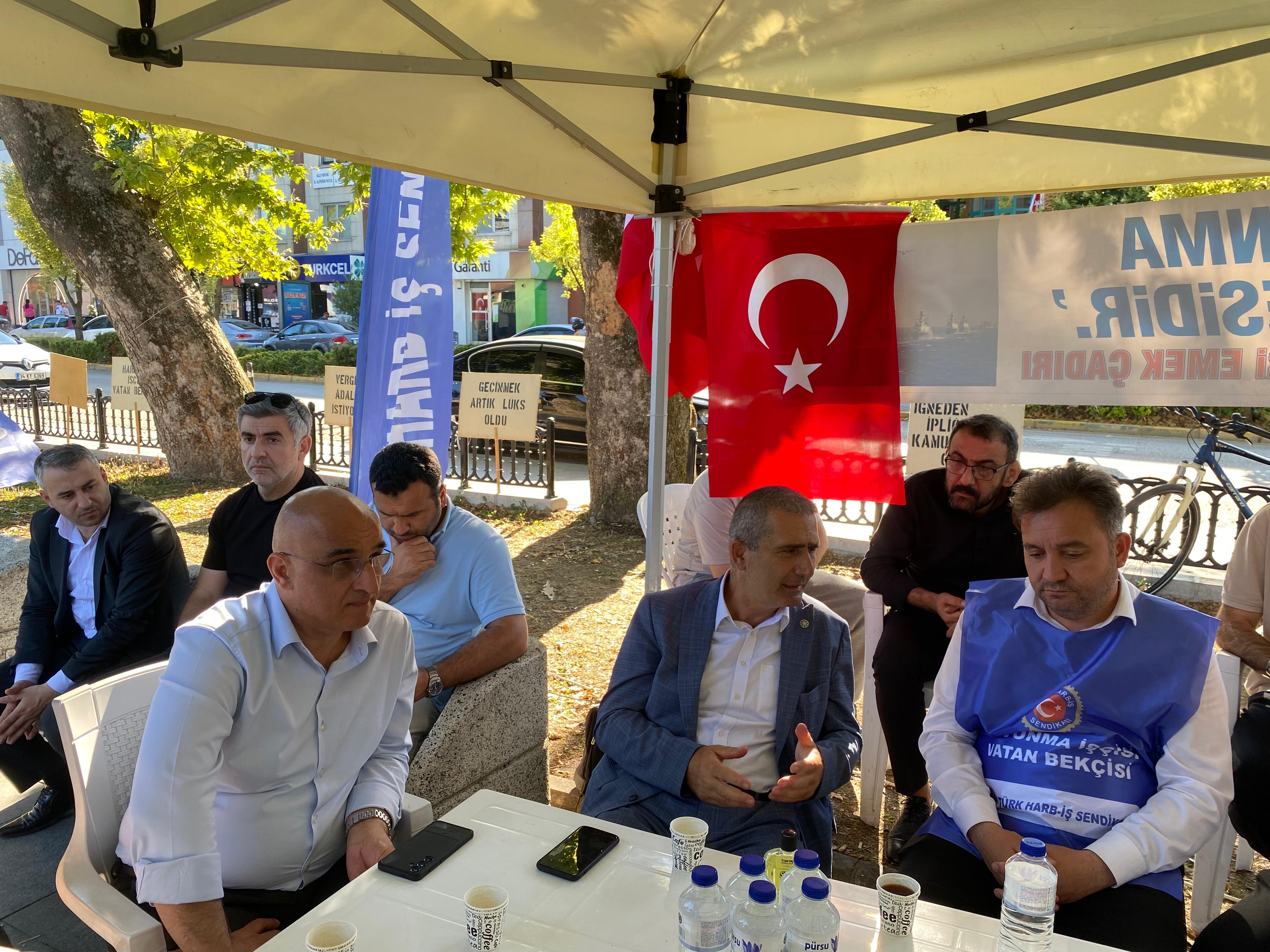 Hükümetin yüzde 16’lık zam teklifi sonrası Gölcük Tersane Komutanlığı’nda eyleme geçen işçileri ziyaret eden İYİ Parti İl Başkanı Kamil Şirin, “Mücadeleniz savunma sanayinin onur mücadelesidir” dedi