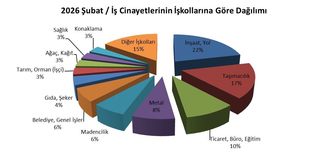 Şubat ayında iş cinayetlerinin işkollarına göre dağılımı şöyle: