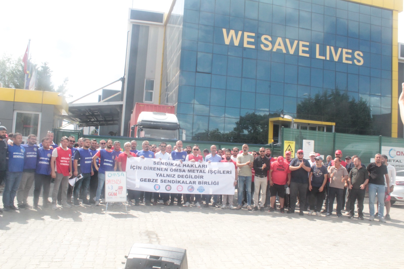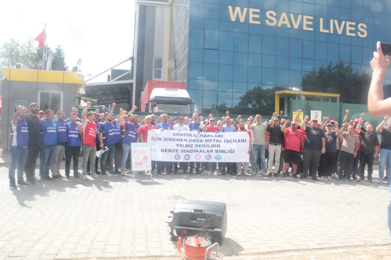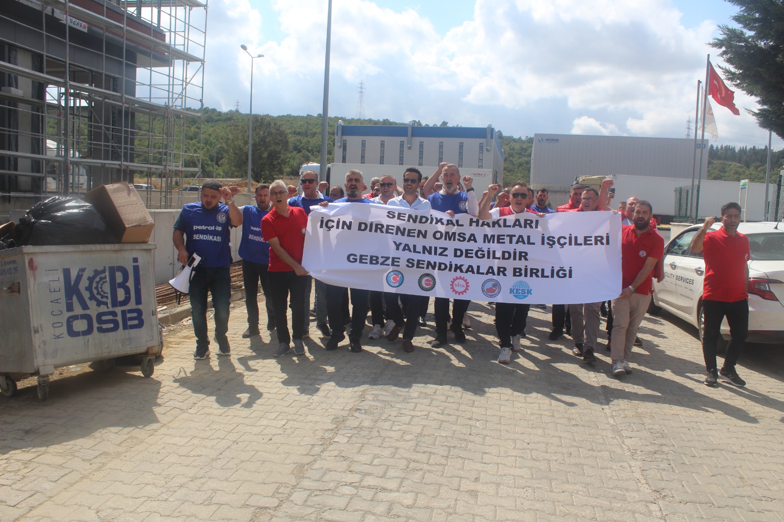 Gebze Sendikalar Birliği, Birleşik Metal-İş Sendikası Gebze 1 No’lu Şube’nin örgütlü olduğu Dilovası Kobi OSB’deki Omsa Metal fabrikasında TİS görüşmeleri sürecinde atılan ve direnişe geçen işçileri direnişlerinin 43’ncü gününde ziyaret etti. BMİS Gebze 2 No’lu Şube Başkanı ve GSB sözcüsü Necmettin Aydın, Omsa’da da sendikal örgütlenme sonrası işsiz bırakıldıklarını belirtip Anayasal haklarını kullanamadıklarını ve Anayasa’nın çiğnendiğini kaydetti. Aydın, “Anayasa çiğneniyor. Türkiye Cumhuriyeti Devleti’nin bir hukuk devleti olduğuna inanmıyoruz” dedi.