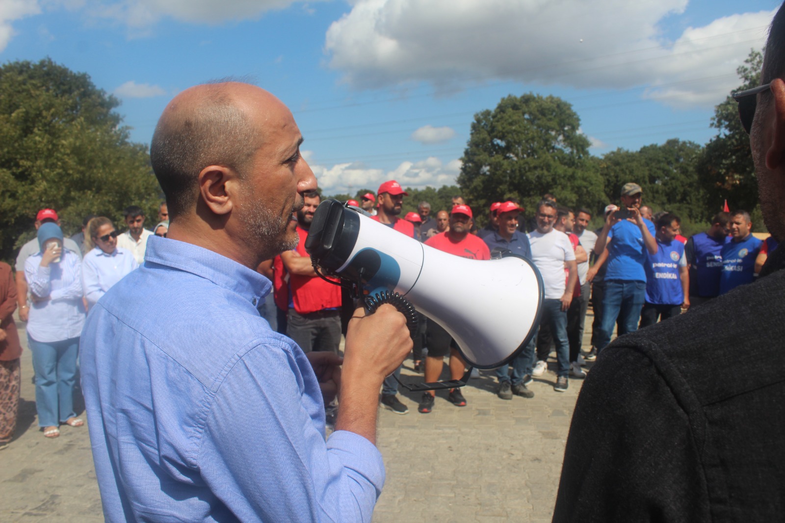 “Türkiye’de ne yazık ki bu yaşadıklarımızı birçok kez yaşadık. Özellikle bölgemizde örgütlenmek isteyen işçilere yönelik saldırı ne yazık ki burada da başımıza geldi. Bizlerden sabah kalkıp çoluk çocuğumuzun rızkı için sabahtan akşama çalışmamızı istiyorlar, çalışıyoruz. Mesaiye kal diyorlar, kalıyoruz. İş kazalarında kanımız akıyor, canımızı veriyoruz. Bu sermayeyi bir türlü doyuramıyoruz.