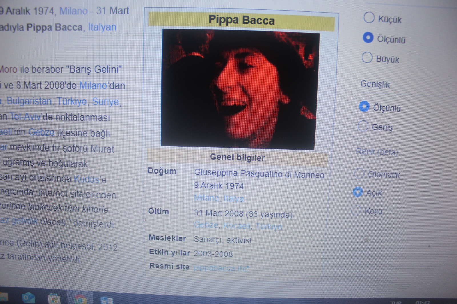 2008 yılında İtalyan sanatçı ve aktivist Pippa Bacca’nın “Barış Gelini” adıyla dünya barışı için düzenlenen yürüyüşte Gebze’de öldürülmesiyle dünyaya…