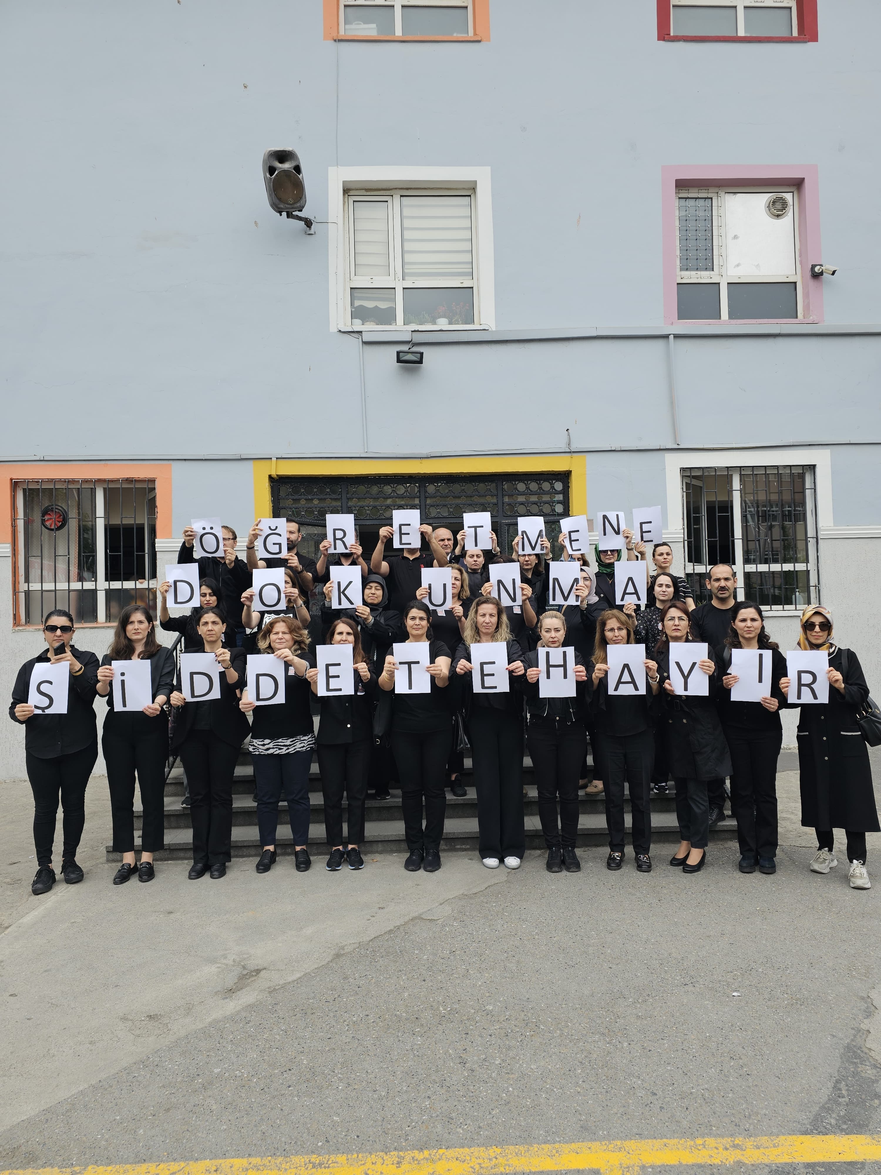 Öğrencisi tarafından öldürülen öğretmen İbrahim Oktugan, Eşrefbey İlkokulu’nda sessiz bir törenle anıldı. Siyah giyen öğretmenler tepkilerini, “Öğretmene dokunma. Şiddete hayır” yazılı koreografi ile ifade etti