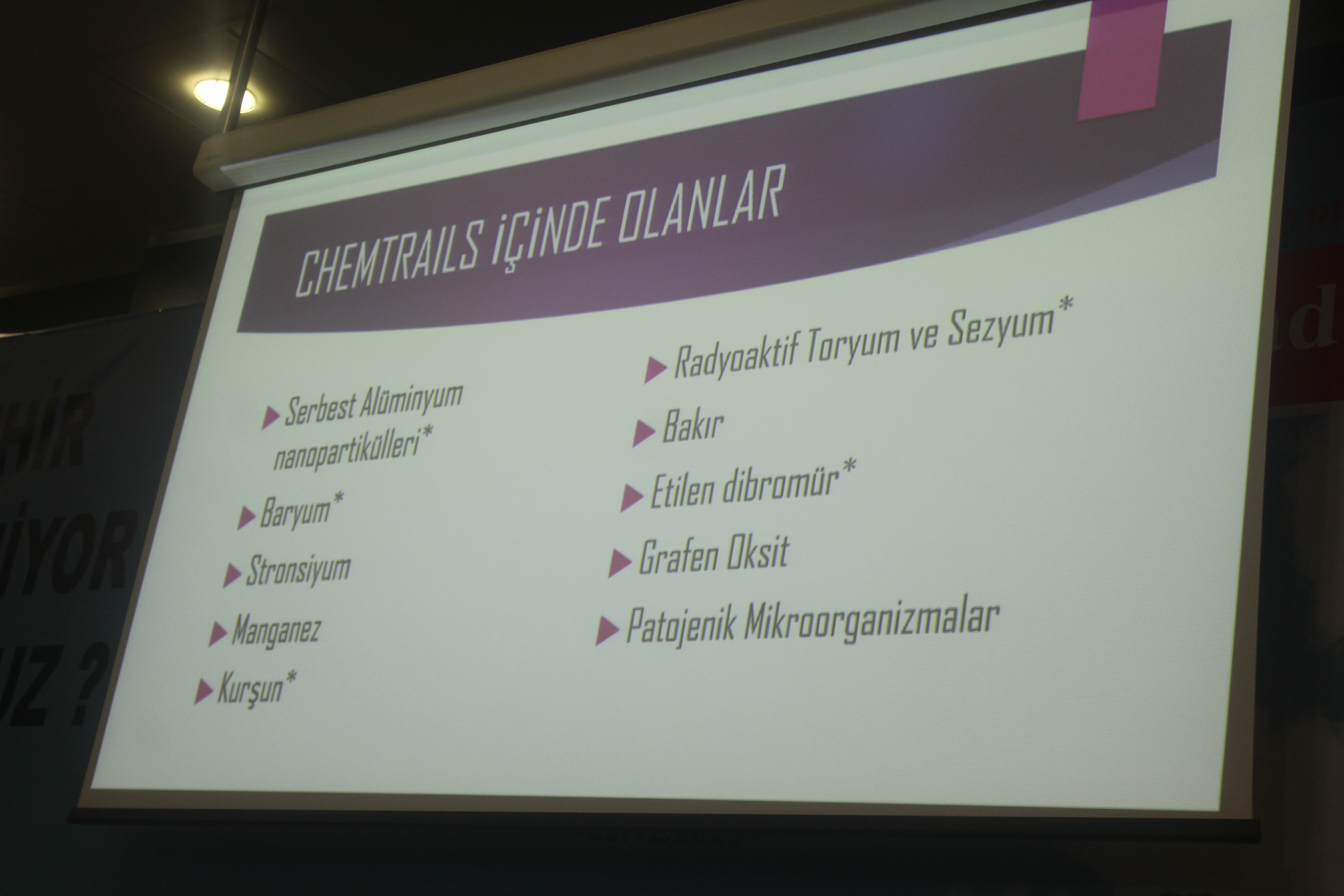 YRP Gebze’nin “Kimyasal spreyleme” konferansında Prof.Dr.Serhat Fındık uçakların kuyruklarından su buharı değil gökyüzünü grileştiren elementler ile zehir yağdığını, gözümüze baka baka yalan söylendiğini, çözümün aklımızla görerek ve mücadelede olduğunu söyledi