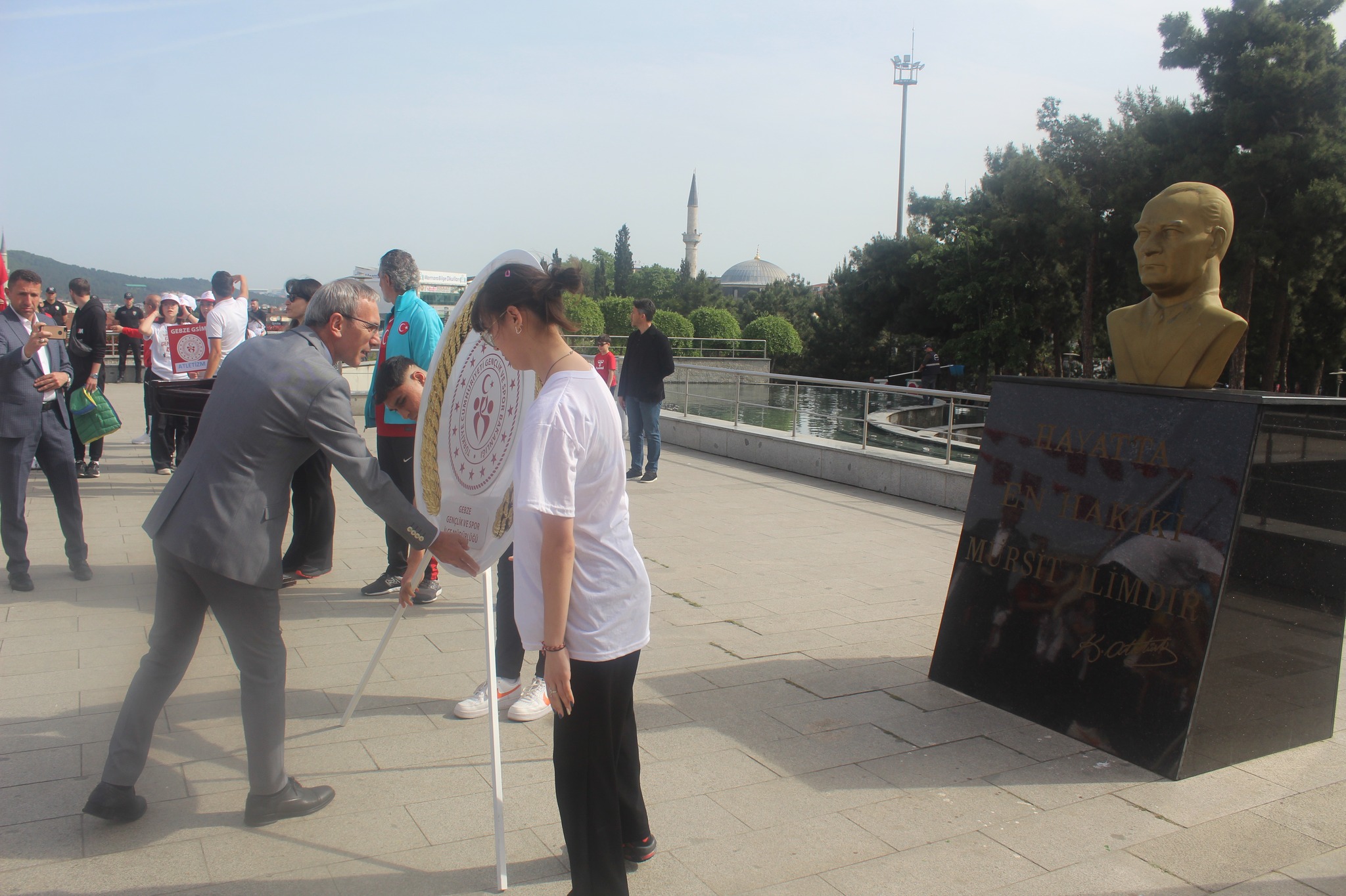 Gebze’deki etkinlikler Gebze Belediyesi ek hizmet binası önünde Gebze İlçe Gençlik Hizmetleri ve Spor Müdürü Hikmet Tatoğlu tarafından Atatürk Anıtı’na çelenk surumu, saygı duruşu ve İstiklal Marşı’nın okunması ile başladı. Anıt önündeki etkinlikte sunumu Gülsu Çelik Ayan üstlenirken İstiklal Marşı, Şehit Öğretmen Necmettin Kuyucu Anadolu Lisesi müzik öğretmeni Nimet Akgül nezaretinde okundu.