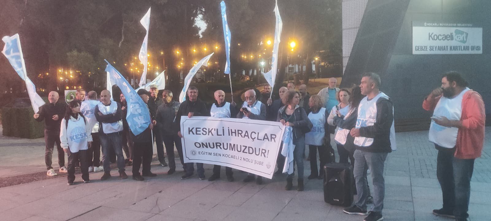 Eğitim-Sen Gebze, “5 Gün, 7 Kent, Tek Ses” a yürüyüşünün bittiği gün meydana çıktı. İktidarın, 12 Eylül ve 28 Şubat süreçlerine adeta nazire yaparcasına, “ölümüne” ihraçlarına karşı kesintisiz mücadelenin süreceği açıklandı