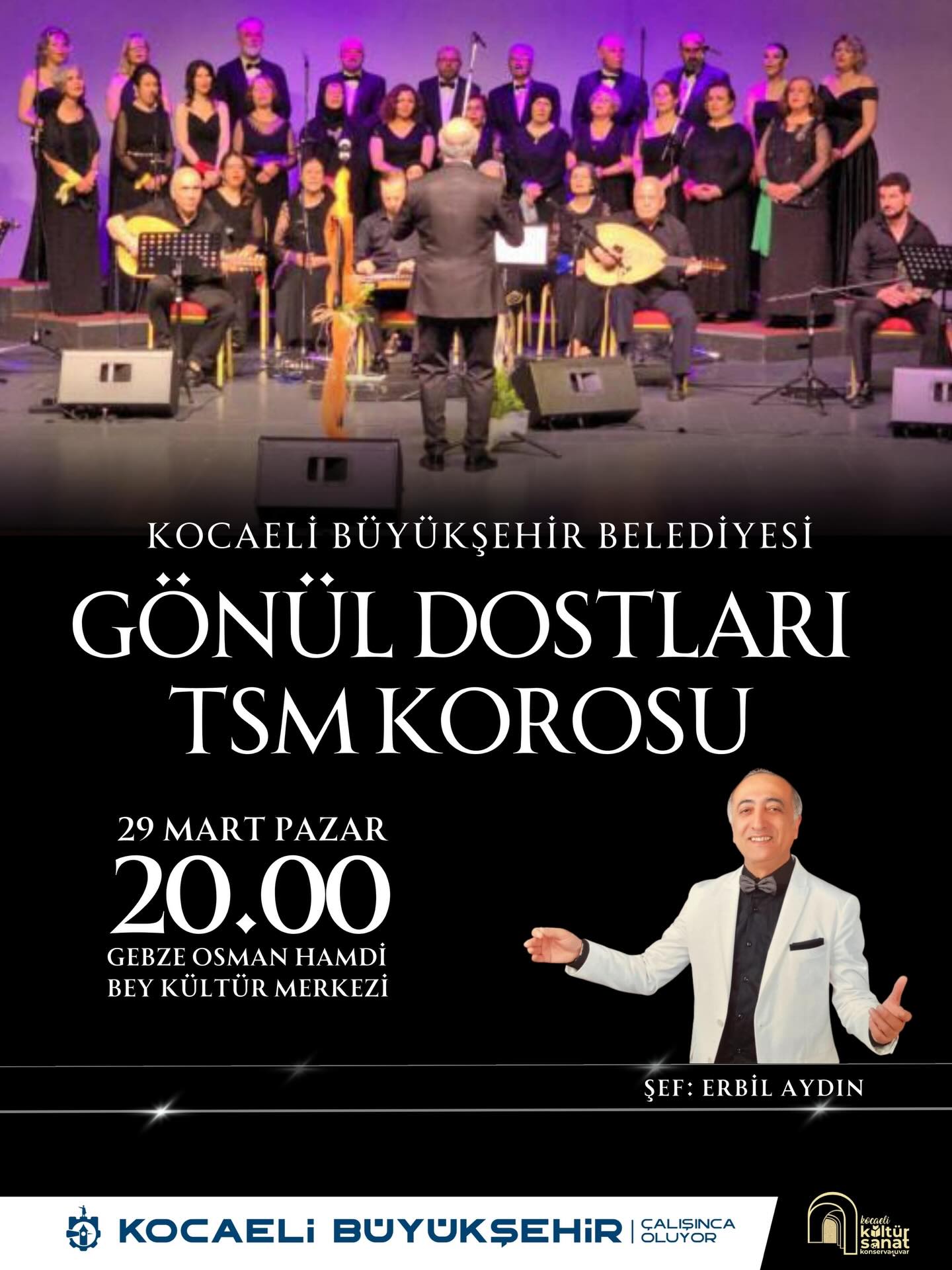Erbil Aydın’ın kurucusu olduğu Gönül Dostları TSM Korosu’nun konseri 29 Mart Pazar günü akşamı Gebze, Osman Hamdi Bey Kültür Merkezinde. Konserde bir süre önce vefat eden, koronun saz ekibinden Birol Sakarya da yad edilecek