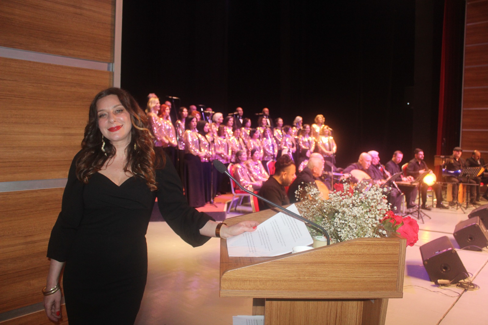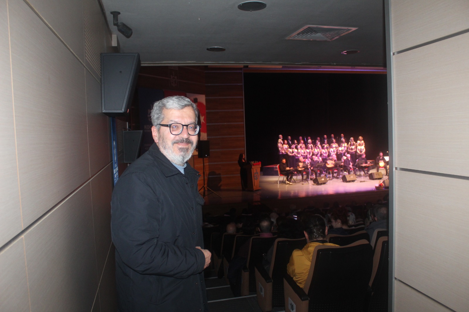 Yıldırım saz ekibi ve koronun ardından koro kurucusu ve şefi, ilimizde musikinin duayeni Erbil Aydın’ı sahneye, “Sevgili konuklar sizler şu an sahnede koromuzun sadece ön yüzünü görüyorsunuz. Ama bir de işin görünmeyen, çok kıymetli bir tarafı var. Size arkası dönük ama her bakışıyla, her mimiğiyle, her küçük hareketiyle koroya bir şeyler anlatan biri var. Şefimiz konuşmadan her şeyi anlatıyor bizlere. Örneğin ‘şu hareket’ gülümseyelim demek, ‘bu hareket’ tize çıkıyoruz ‘şu hareket’ ise şarkıyı bitiriyoruz demek. O hareketler olmasa, o bakışlar mimikler olmasa bu uyum, bu bütünlük, bu duygu ortaya çıkmazdı. Çünkü bir şef sadece yönetmez. Hissettirir, birleştirir ve müziğe ruh verir” diye davet etti.