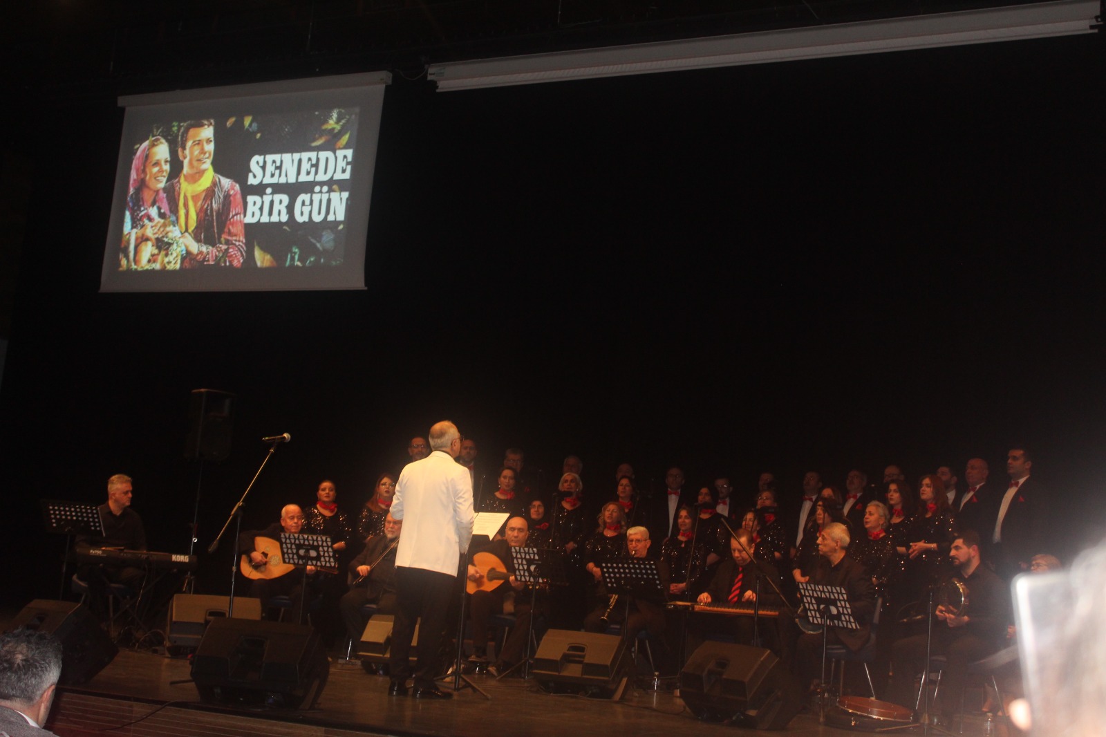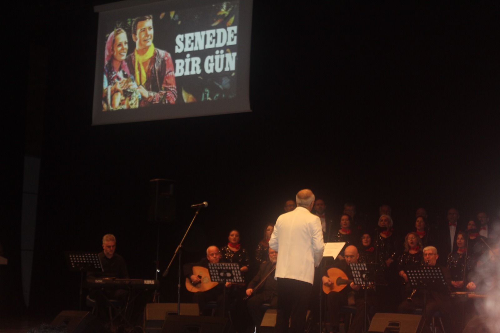 İlimizde musikinin duayeni Erbil Aydın şefliğindeki koro konserinde Yeşilçam filmleri ile de belleklere yerleşen 19 eseri seslendirdi. Ayhan Özışık’a ait. “Senede Bir Gün” ile başlayan musiki ziyafetinde seslendirilen son eser, Hababam Sınıfı ile özdeşleşen, Erkin Koray’ın eseri “Fesupanallah” oldu. Konserin finali 10’ncu Yıl Marşı ile yapıldı. Sahnedeki koroya zaman zaman ve kimi nakaratlarda, salondaki musikiseverlerden oluşan koro da eşlik etti.