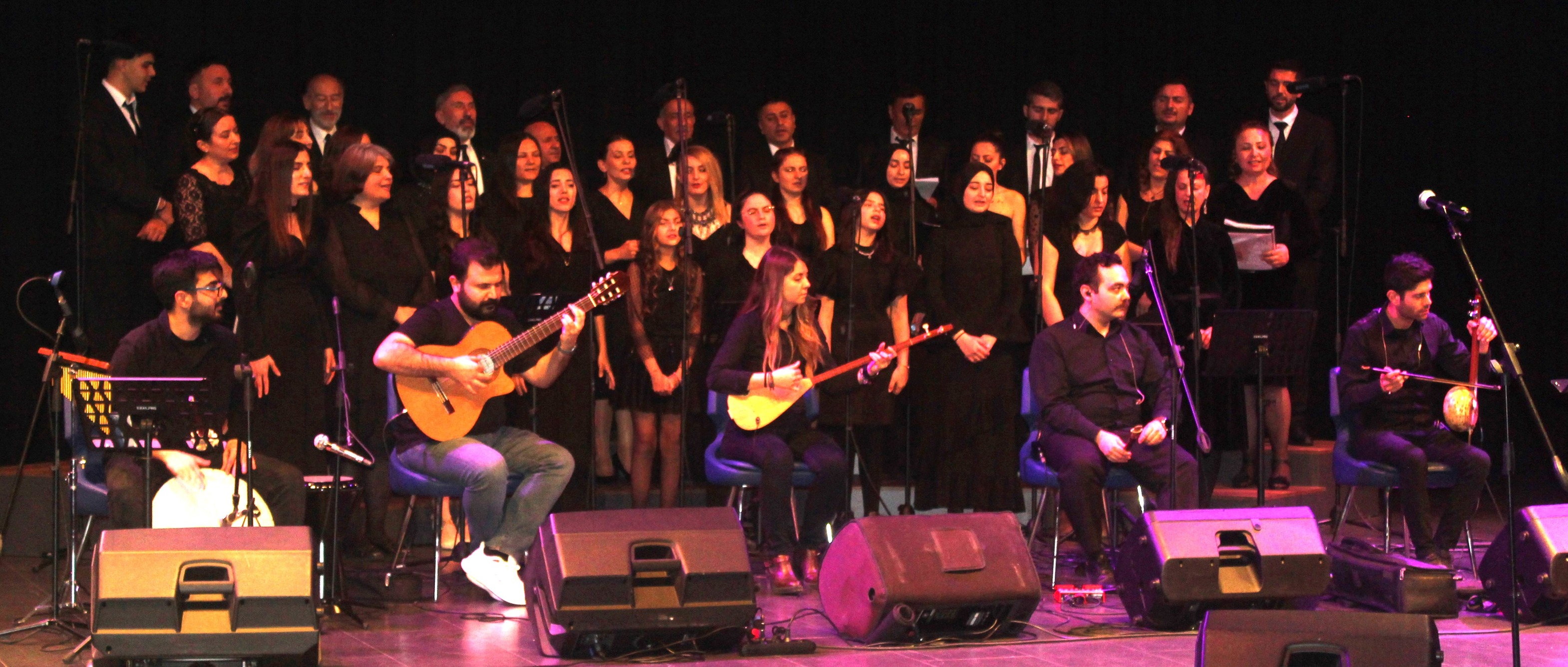 Koroda saz ekibi Bünyamin Oral (Ritim/Perküsyon), Orhan Kara (Gitar), Ezgi Tekin (Bağlama/Kopuz), Yakup Yaman (Mey), Enes Kıtay’dan (Kabak kemane) oluştu. Konser için Öğretim Görevlisi Ezgi Tekin, Niğde’den geldi. Niğde Ömer Halisdemir Üniversitesi Türk Musikisi Devlet Konservatuvarı Müzikoloji Bölümü Müzikoloji Anabilim Dalı’nda görev yapan Tekin’in yanısıra Orhan Kara’nın da konser için uzak mesafeden geldiği öğrenildi. 25’i kadın, 33 kişilik koroda ise şu isimlerden oluştu:
