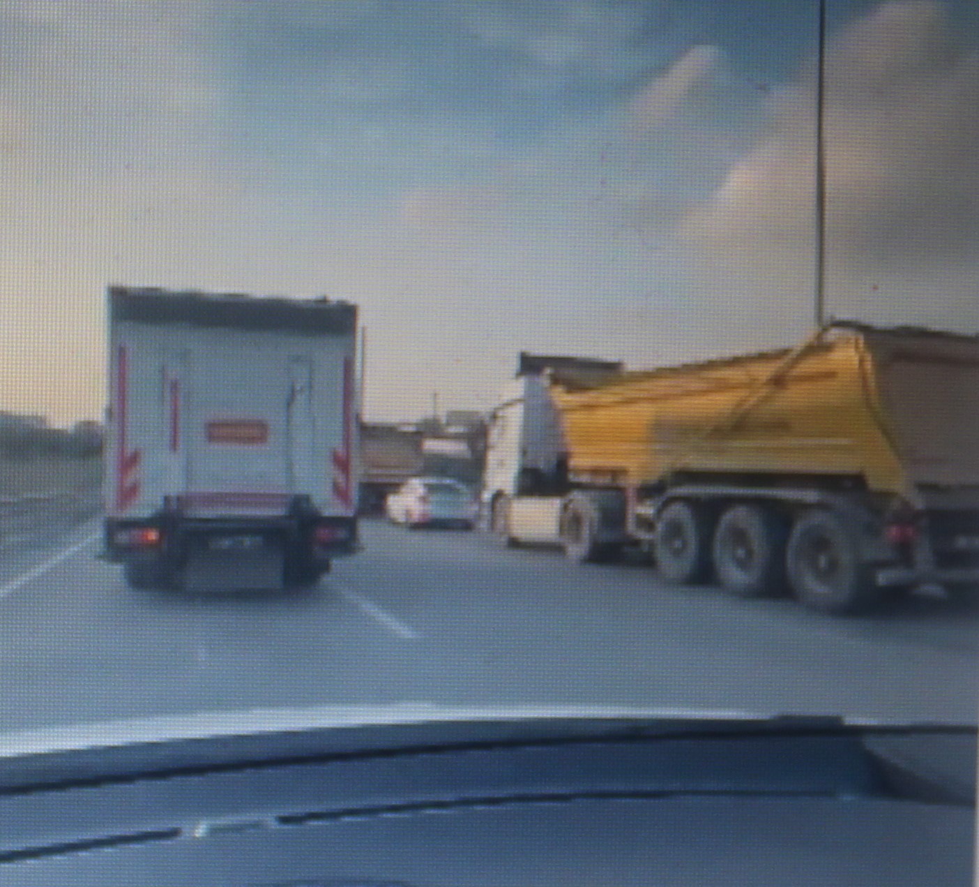 Önündeki kamyon sürücüsüne: Beni gör abi, ben gidiyorum. Bir gör daa..Şerit ihlali yapmıyorum, sen yapıyorsun.