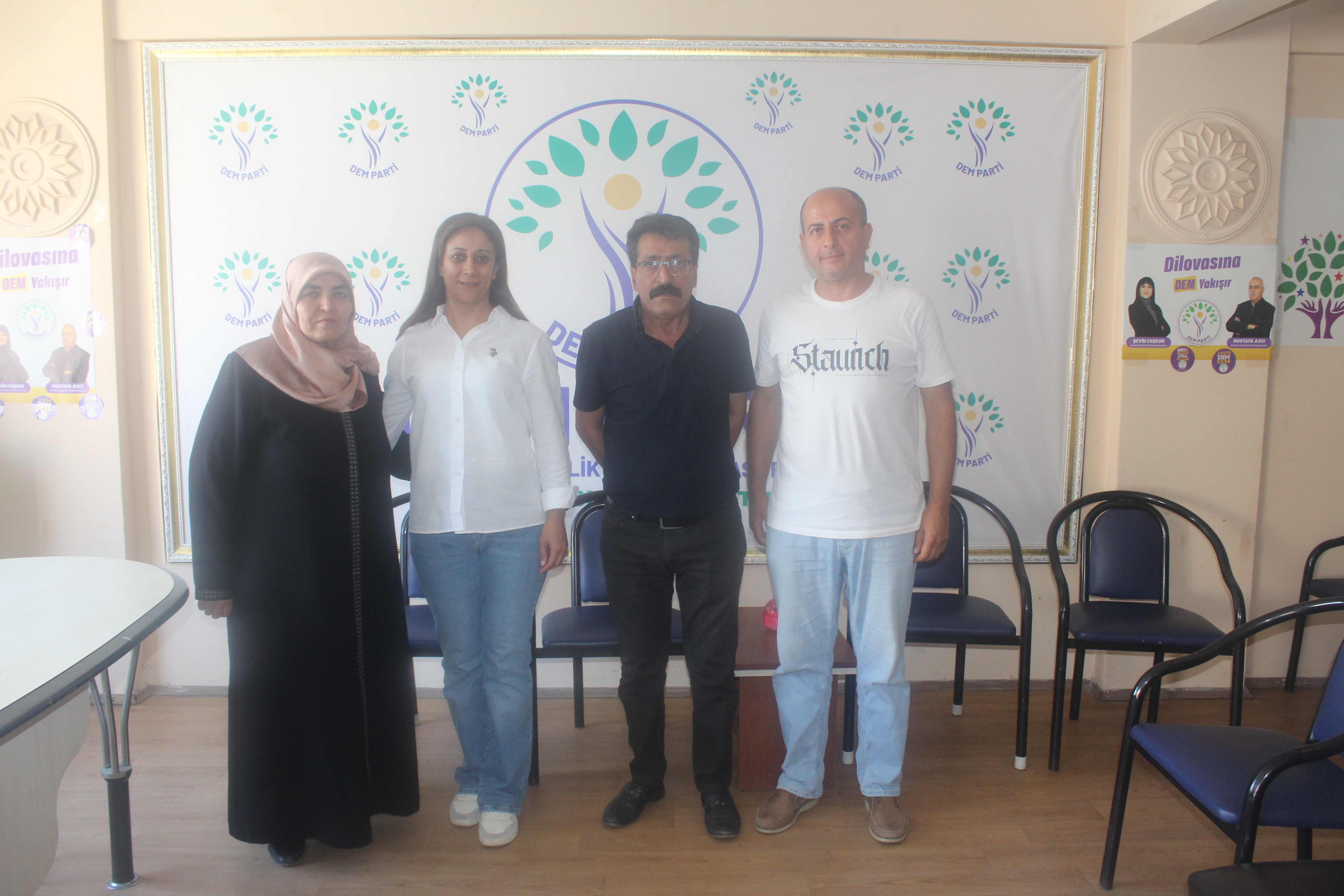 -Soldan sağa- DEM Parti Dilovası İlçe Eşbaşkanı Havin Akboğa, Dilovası Belediyesi DEM Parti meclis üyeleri Eylem Güleser, Ramazan Akboğa ve Yavuz Yol.
