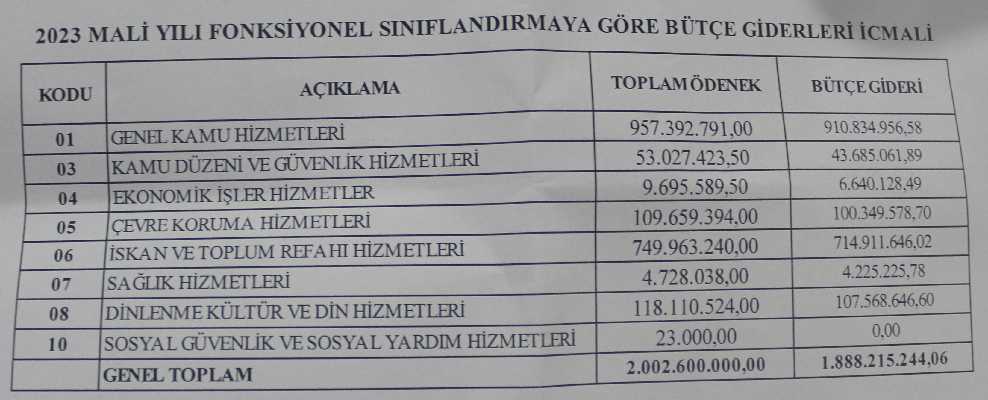 GENEL TOPLAM 2.002 milyar TL 1.888 milyar TL