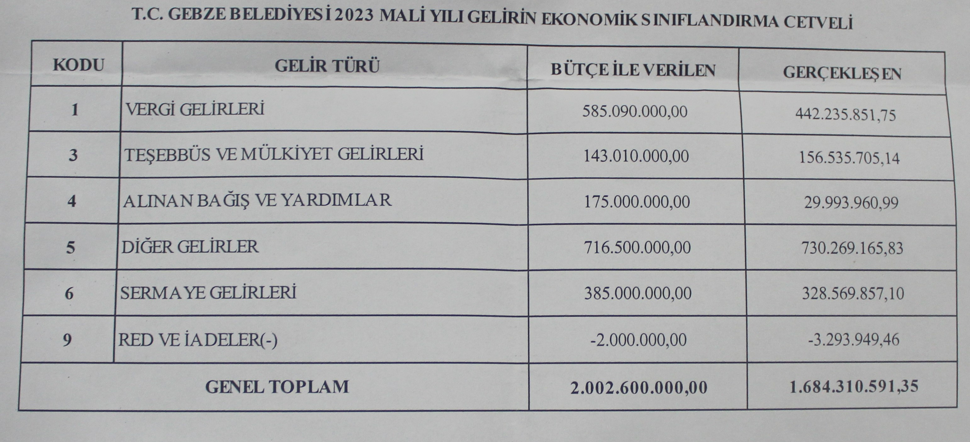 2023 BÜTÇESİ, YÜZDE 84 TUTTU Gebze Belediyesi, 203 milyon TL açık verdi