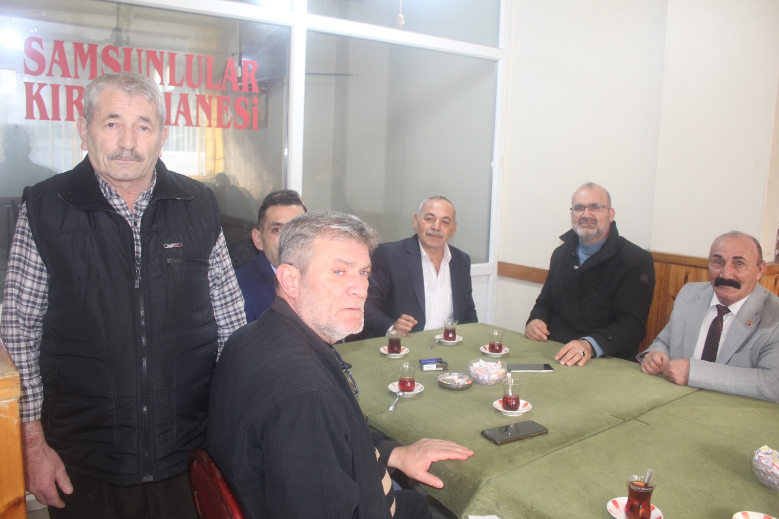 Muhtar Erdal Söylemez ve aza adayları ile dünürü Dursun Korkmaz’dan oluşan heyet, Samsunlular Kahvesi’nde Kocaeli Samsun Dernekler Federasyonu Yönetim Kurulu Üyesi Muammer Temizsoy ile bir araya geldi. Temizsoy aleni şekilde Söylemez’i muhtarlıkta desteklediğini belirtti.
