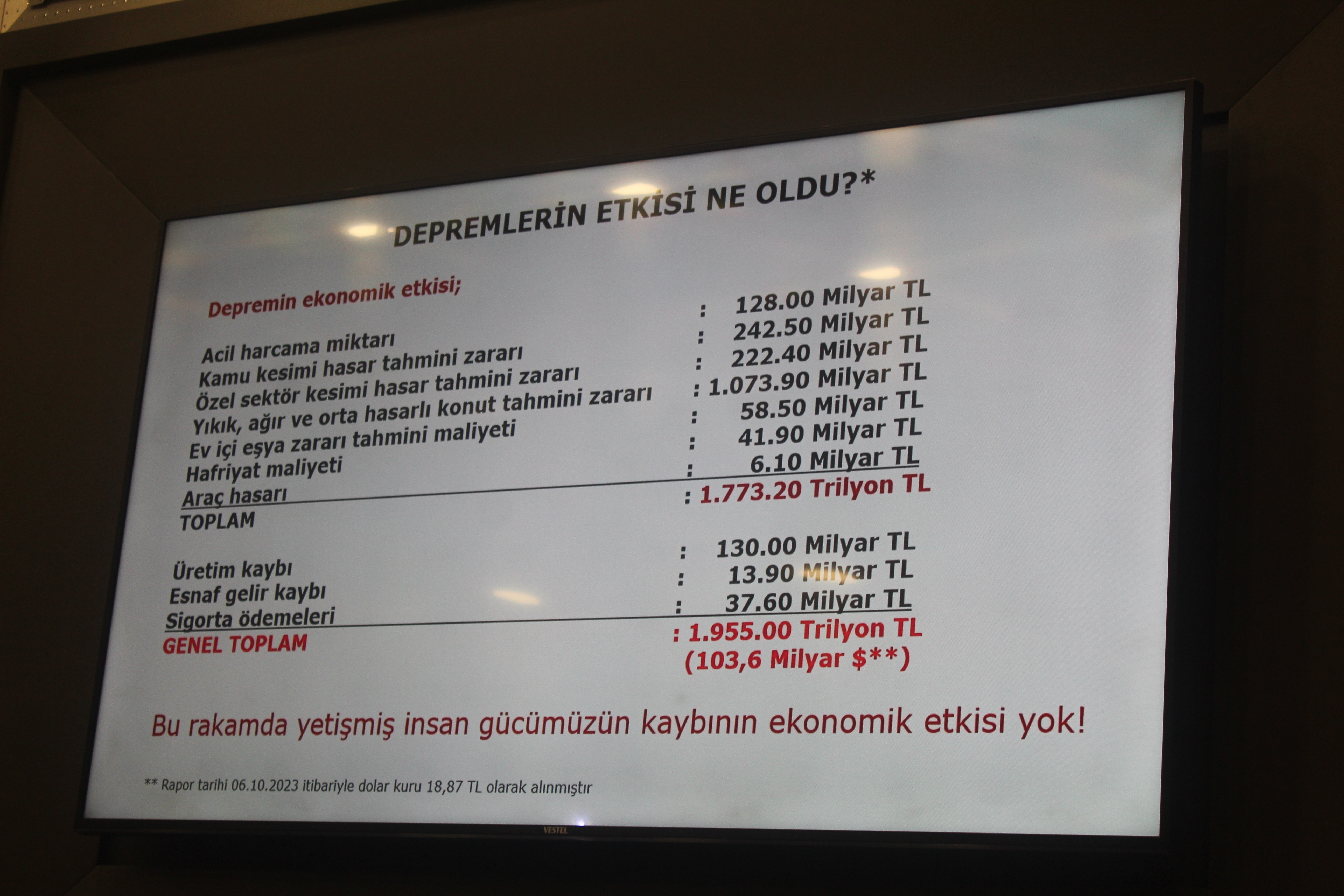 Pazarcık ve Elbistan’da art arda yaşanan iki depremdeki kayıplarımıza dair AFAD verileri üzerinden istatistikleri aktaran Engin, “Depremin ekonomik etkisine bakacak olursak; toplamda 1955 trilyon TL kaybımız var. Ancak can kayıplarımızın yetişme maliyetlerini de koyarsak rakam çok daha yüksek” dedi.