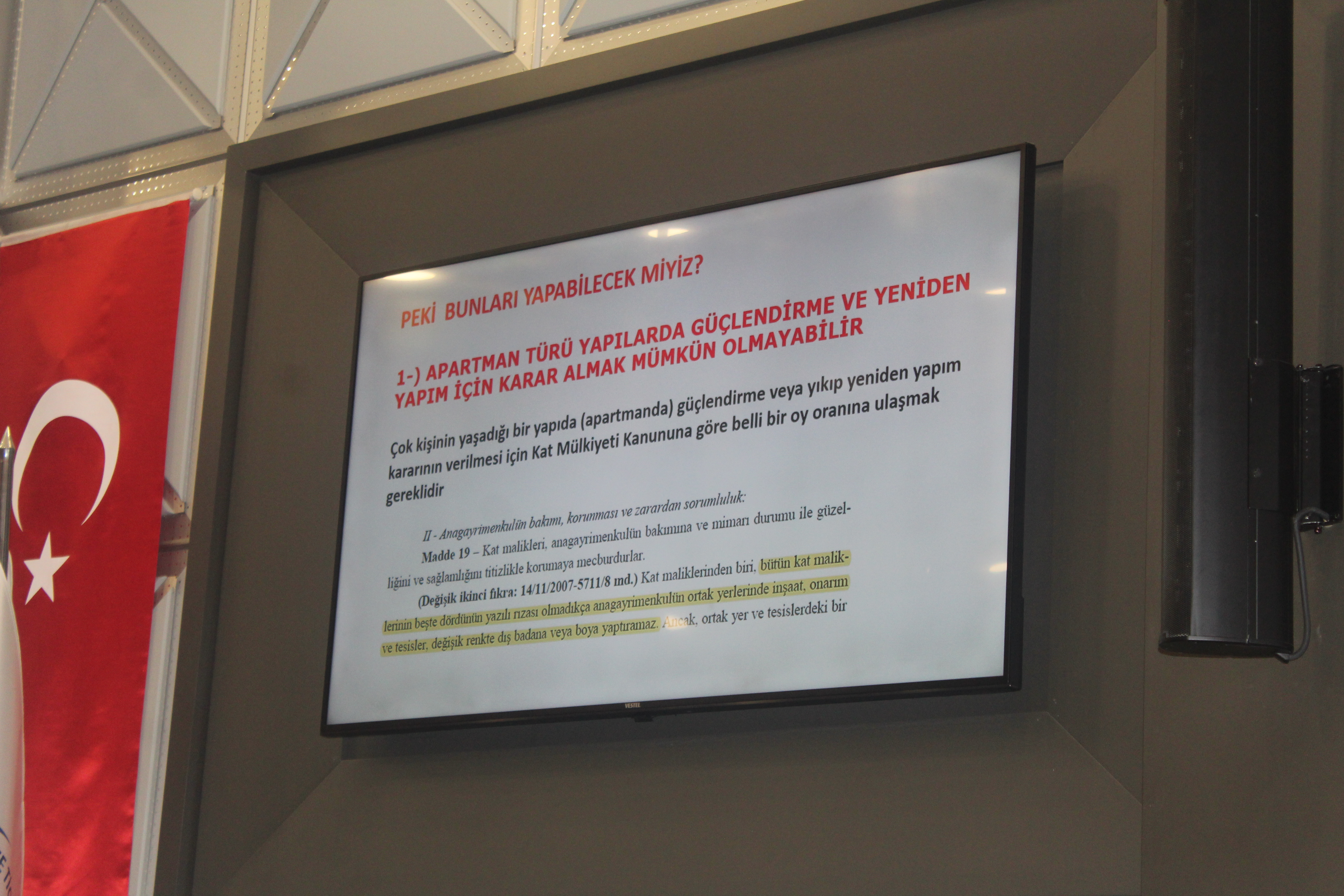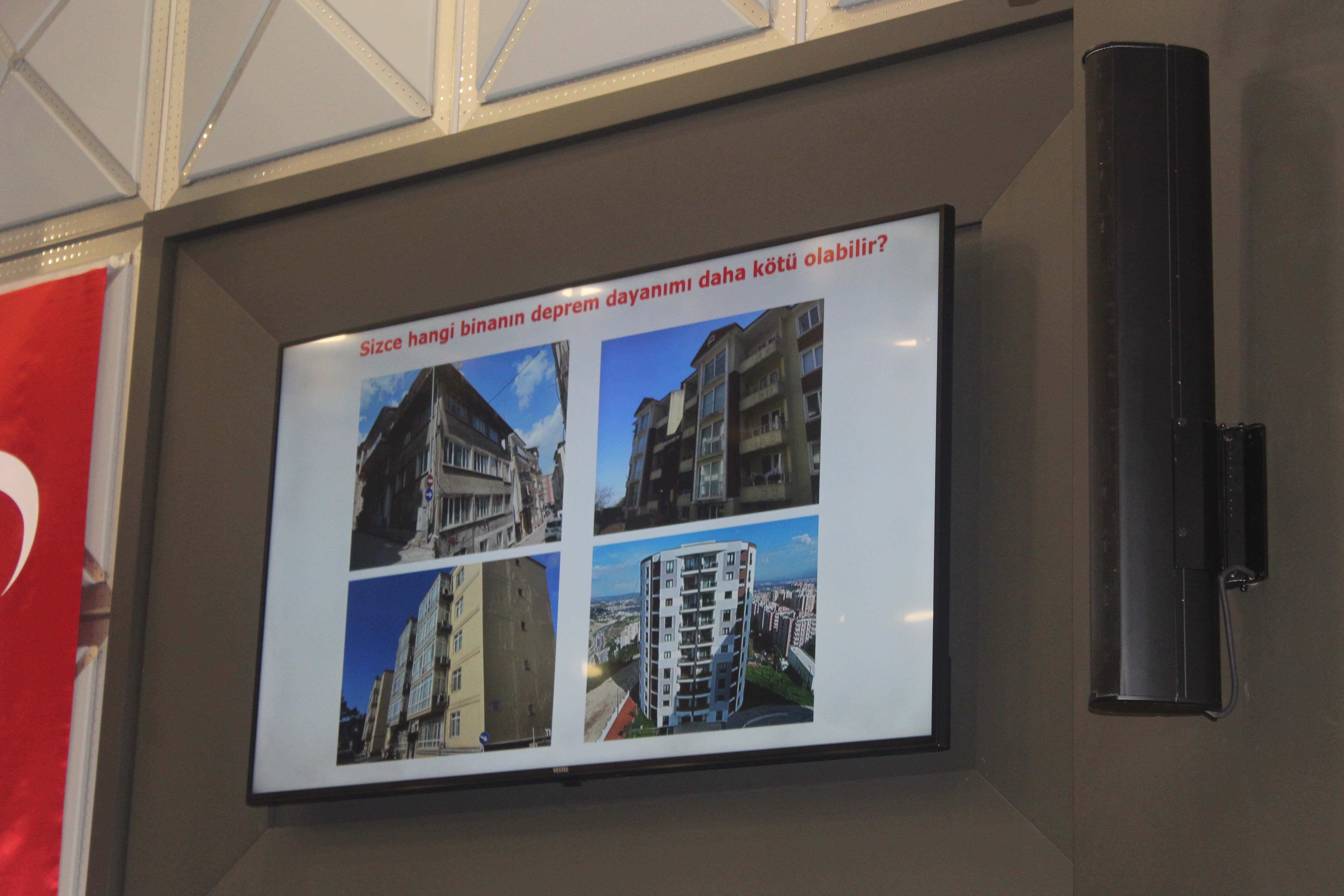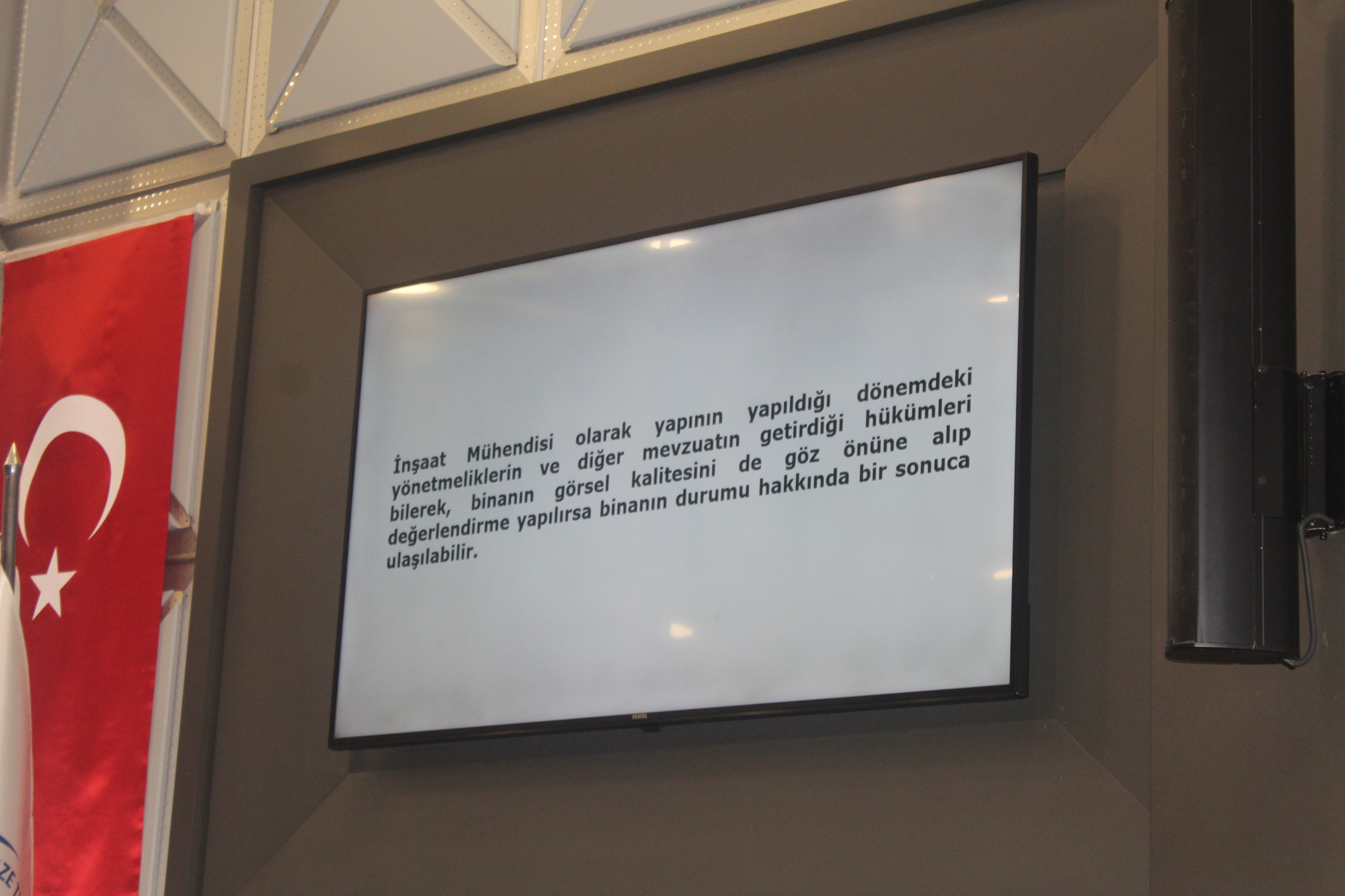Kocaeli Üniversitesi, Kocaeli Büyükşehir Belediyesi ve İMO Kocaeli Şubesi arasında imzalanan protokol sonrası ilimiz geneli bina tarama çalışmasının bu zeminde; önce İzmit Belediye Başkanı Fatma Kaplan Hürriyet ardından KBB Başkanı Tahir Büyükakın ile bir araya gelinen toplantılarda türediğini anlatan Engin bir takım görseller üzerinden katılımcılarla küçük bir test yaptı. Ardından, “Ezberciliği bırakalım. Kuralına uyarsak, hepsi olur ama kurallara uymayı seven toplum değiliz. Konu sadece ve tek başına ‘siyasetçilere’, ‘hocalara’, ‘vatandaşa’ bırakılacak konu değil. Hep birlikte el ele verirsek bir şey olur” dedi.