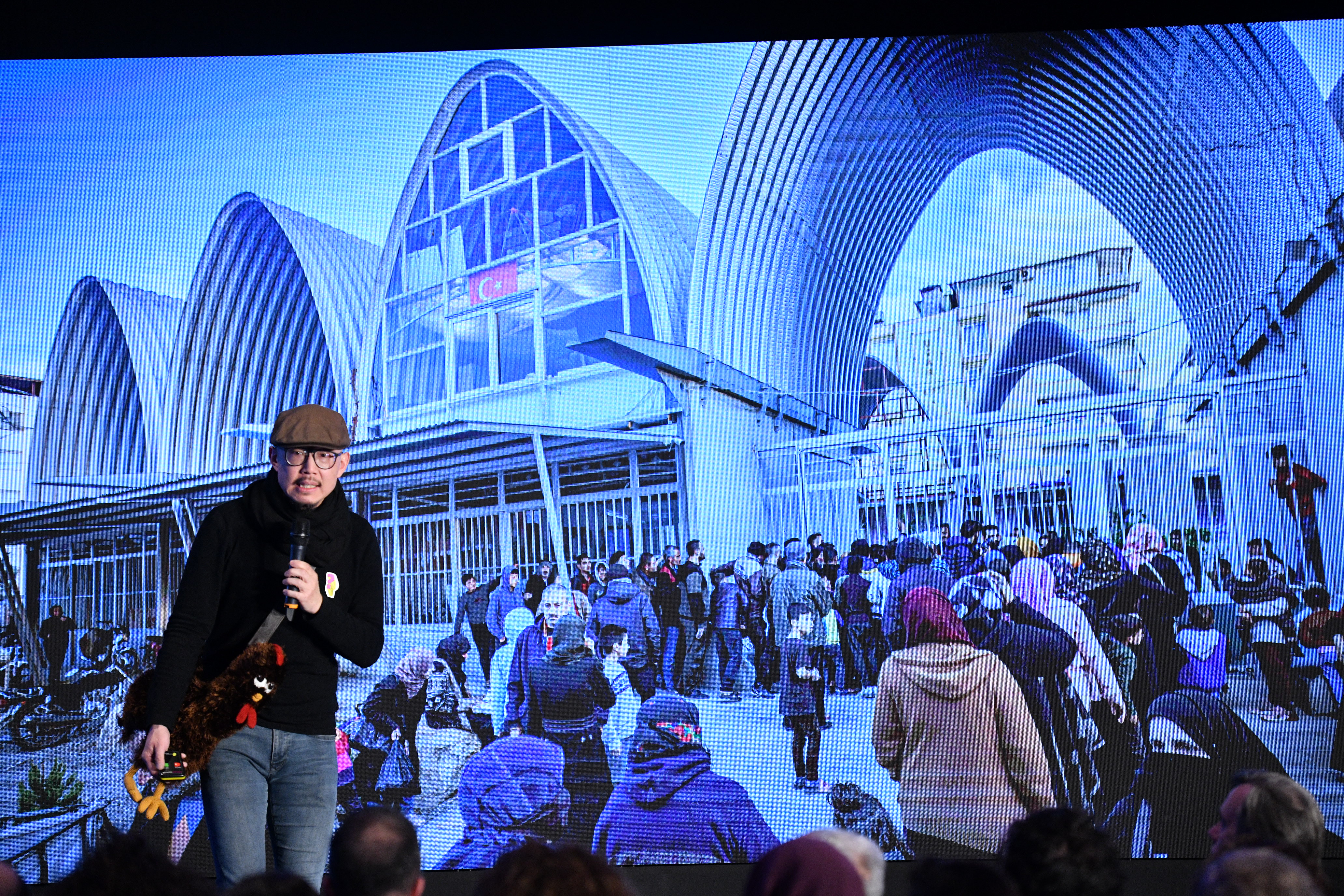 “Umut İçin Mimarlık”oturumunda ise bu yıl World Architecture Festival -WAF’ta “Reyhanlı Dünya Vatandaşları Merkezi” ile ödül alan Tayvanlı mimar Dr. Chen-Yu Chiu (Cho) yer aldı.Mimari tasarımını Dr. Chiu’nun gönüllü olarak yaptığı ve halen direktörlüğünü yürüttüğü, 8 yıl önce kurulan Reyhanlı Dünya Vatandaşları Merkezi, uzun yıllardır süren savaş ve yaşanan göç nedeniyle 100 bin nüfuslu Reyhanlı’ya gelen 250 bin mültecinin birlikte bir yaşam inşa etmesi için hayati öneme sahip. Bu merkez, çok amaçlı toplantı salonları, spor merkezi, işlik ve atölyeler, yerel işletmeciler için satış alanları, çocuklar, kadınlar ve engelliler için kapsayıcı yaklaşımı ile bölgenin kalbi niteliğinde.