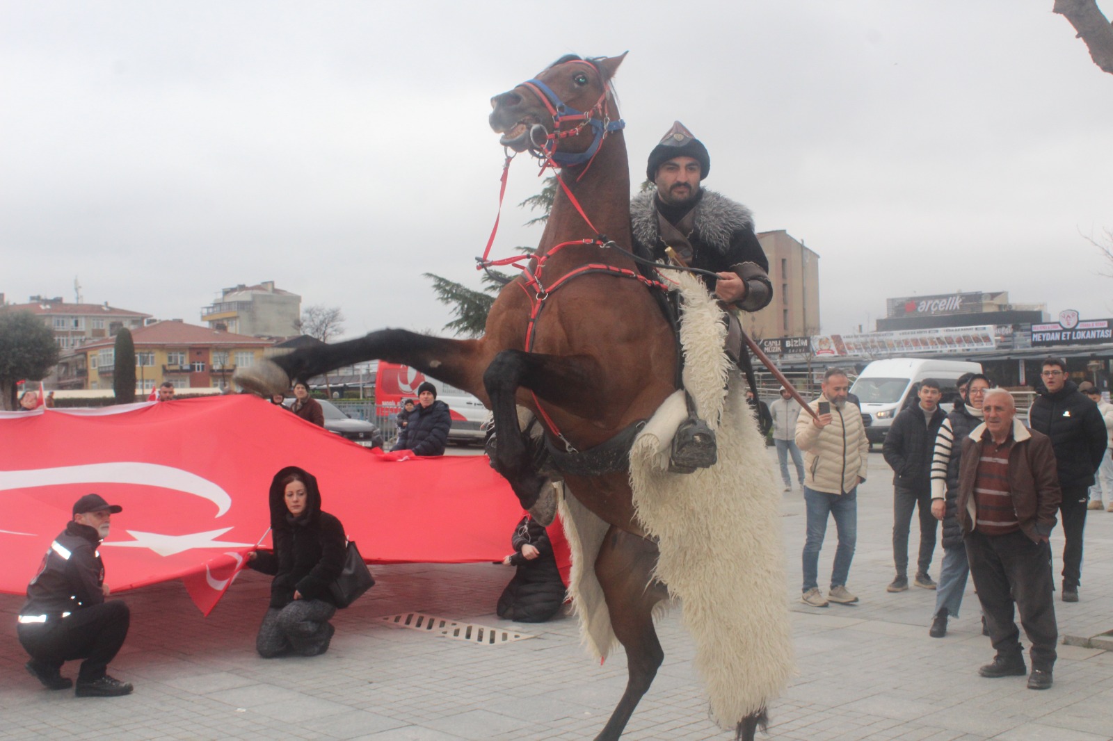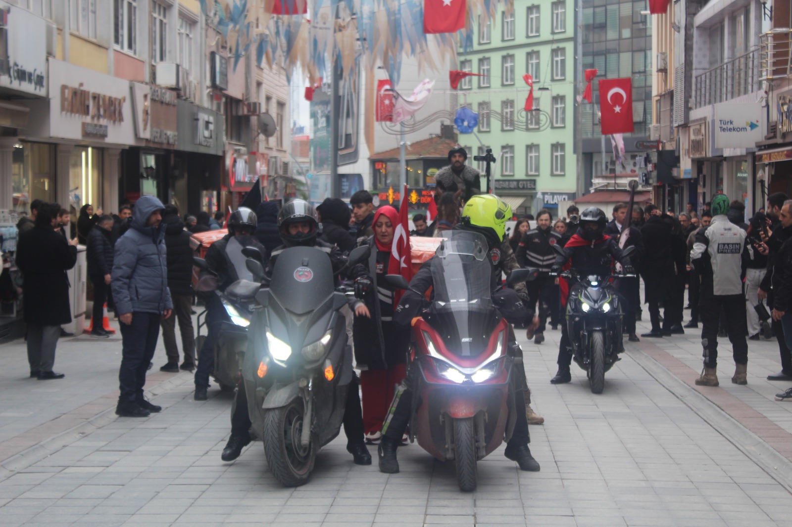 Gebze merkezli Hürriyet ve İstikbal Derneği motosikletli kuryeler ve bir atlı süvarinin katılımı, iki devasa Türk Bayrağı ile renkli görüntülere sahne oldu. Başkan Derebaş, “DEM Parti kapatılmalı. DEM Partililer yargılanmalı” dedi