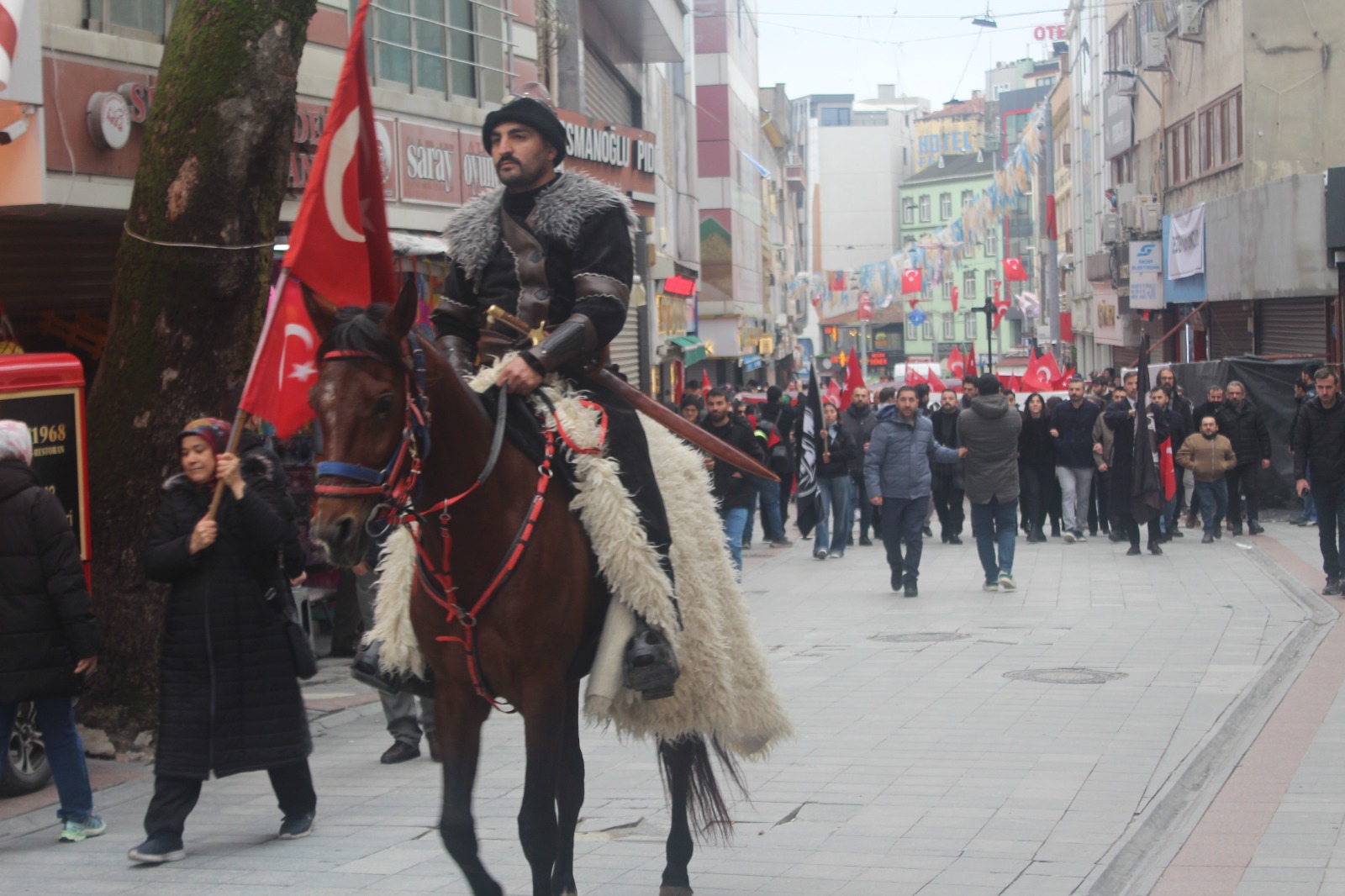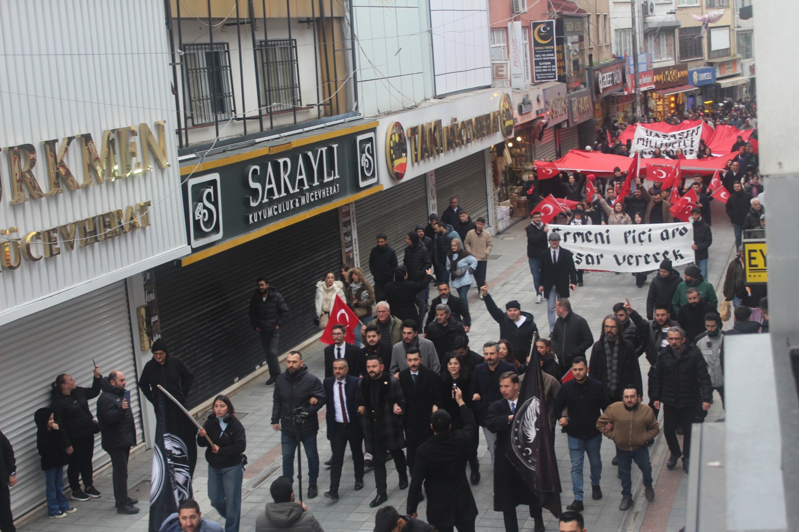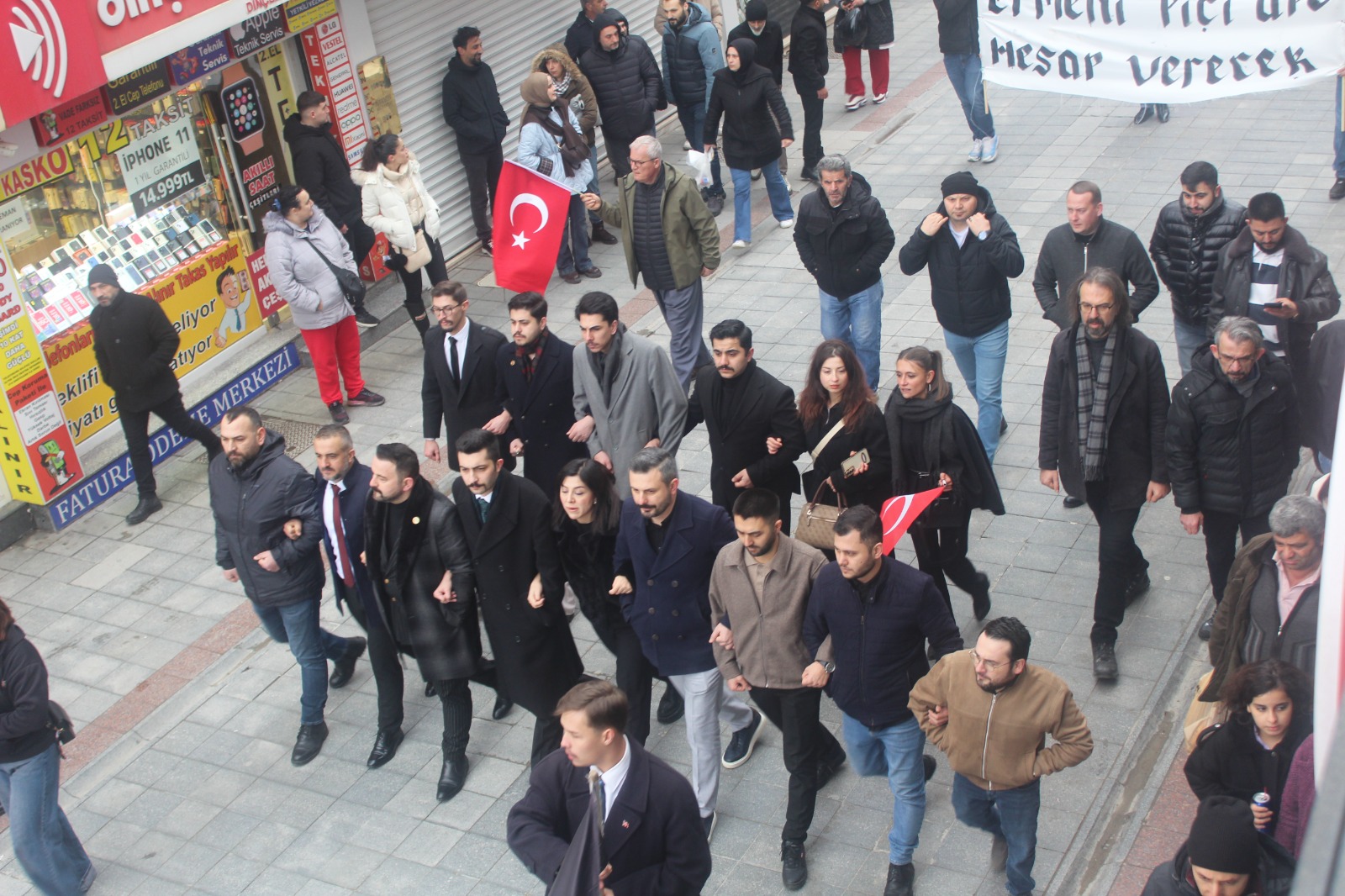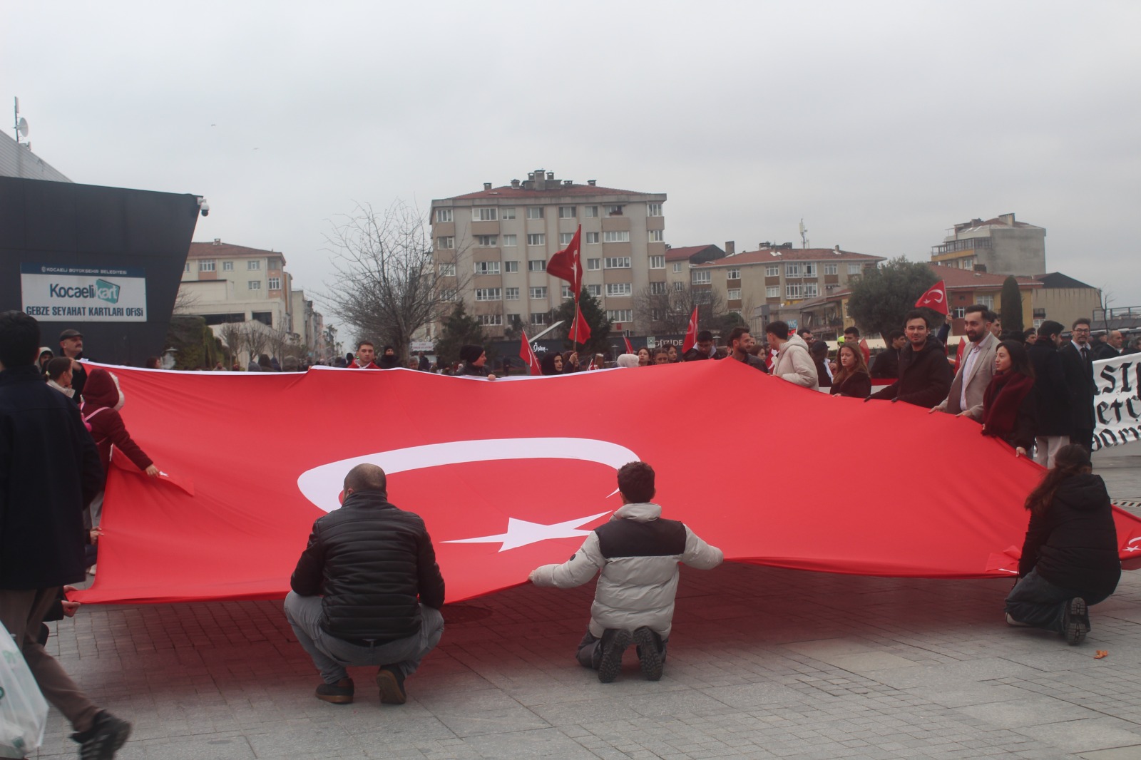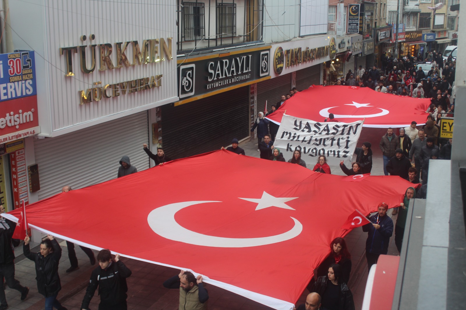 Alaattin Kürşat Derebaş genel başkanlığındaki Gebze merkezli Hürriyet ve İstikbal Derneği bugün Mardin Nusaybin’deki bayrağımıza saldırı vakasına karşı görkemli bir yürüyüş yaptı. Motosikletli kuryeler ile bir atlı süvarinin eşlik ettiği, iki devasa Türk Bayrağı’nın açıldığı yürüyüşte PKK terör örgütü ve Öcalan aleyhine sloganlar ile birlikte “Ne mutlu Türküm diyene” ve benzeri sloganlar a atıldı.