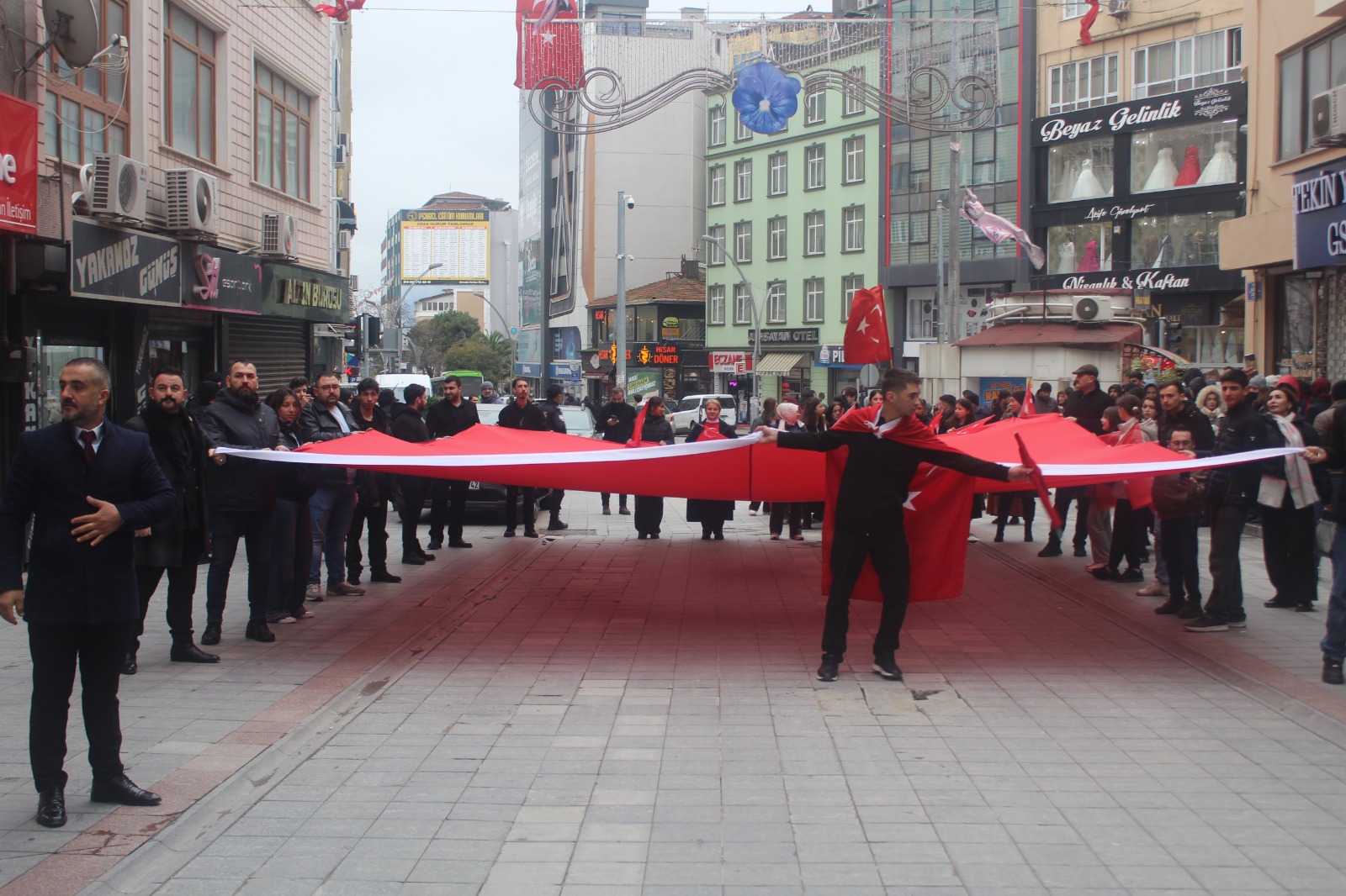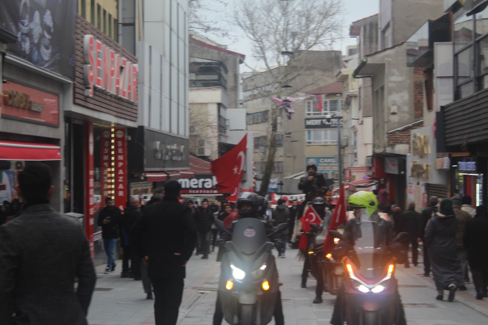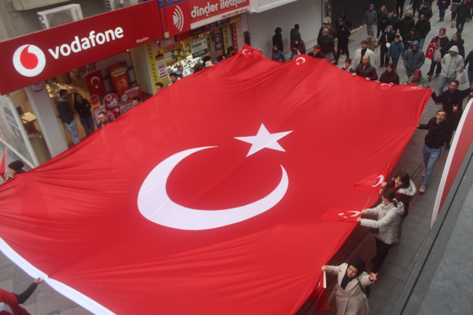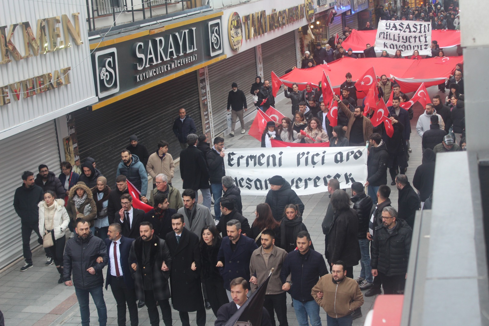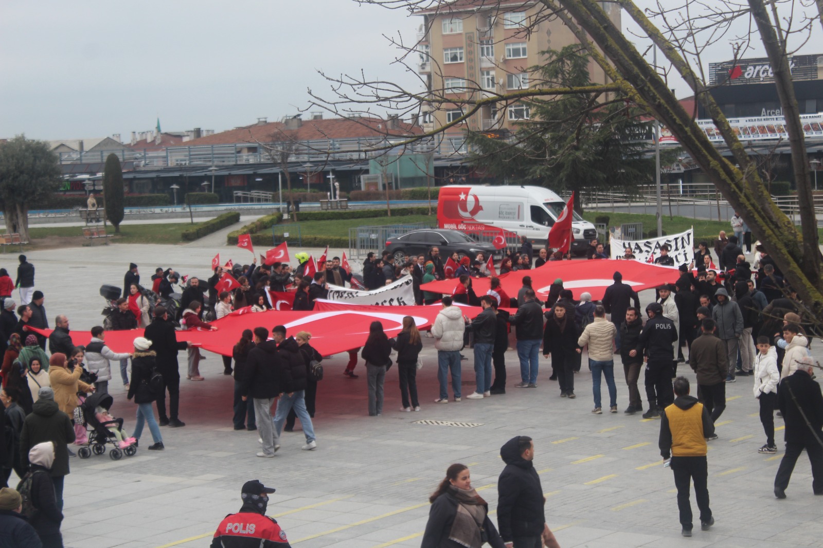 Alaattin Kürşat Derebaş genel başkanlığındaki Gebze merkezli Hürriyet ve İstikbal Derneği bugün Mardin Nusaybin’deki bayrağımıza saldırı vakasına karşı görkemli bir yürüyüş yaptı. Motosikletli kuryeler ile bir atlı süvarinin eşlik ettiği, iki devasa Türk Bayrağı’nın açıldığı yürüyüşte PKK terör örgütü ve Öcalan aleyhine sloganlar ile birlikte “Ne mutlu Türküm diyene” ve benzeri sloganlar a atıldı.