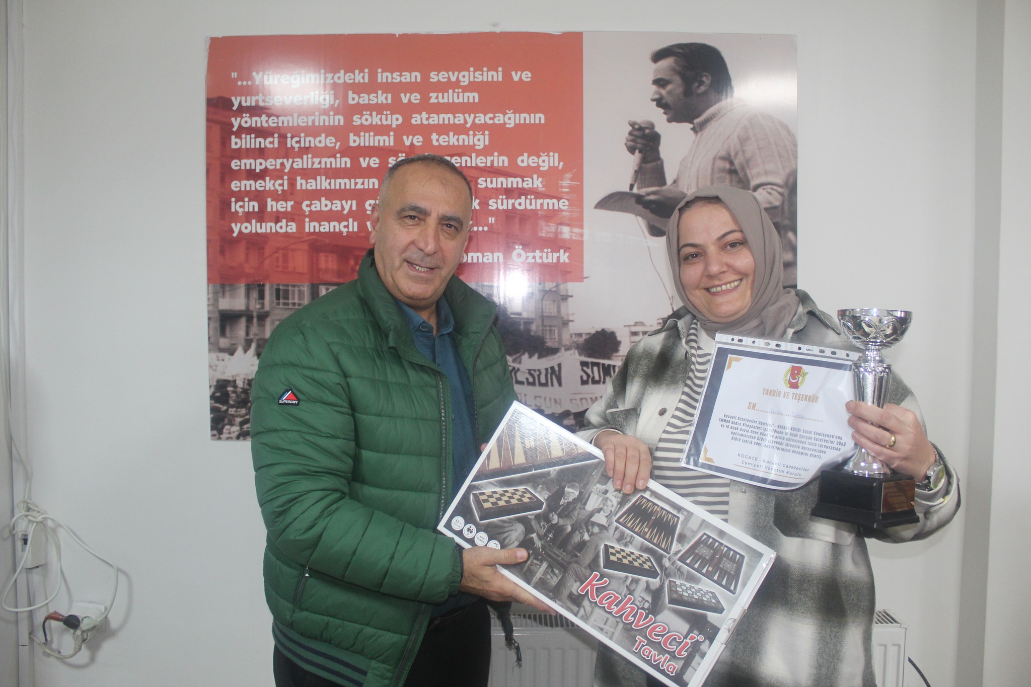 Kocaeli Gazeteciler Cemiyeti Kültür Sanat Komisyonu’nun Gebze’de TMMOB Gebze işbirliğindeki tavla turnuvasında finale işçiler Şennur Dikgöz ve Erdinç Yılmaz kaldı. Yılmaz son eli bir pul farkla, maçı 7-6 alarak şampiyonluğu edindi