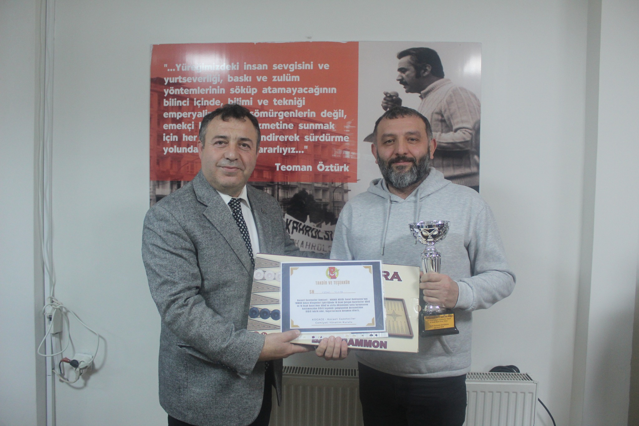 KOGACE’NİN TAVLA TURNUVASINDA FİNALİ İŞÇİLER OYNADI Erdinç Yılmaz bir pul farkla şampiyon