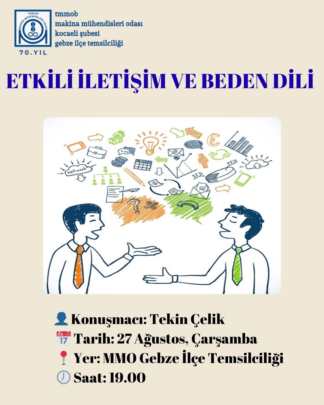 TMMOB MMO Gebze Temsilciliği’nde yarın akşam “Etkili İletişim ve Beden Dili” semineri gerçekleşecek. Seminere konuşmacı olarak Tekin Çelik katılacak