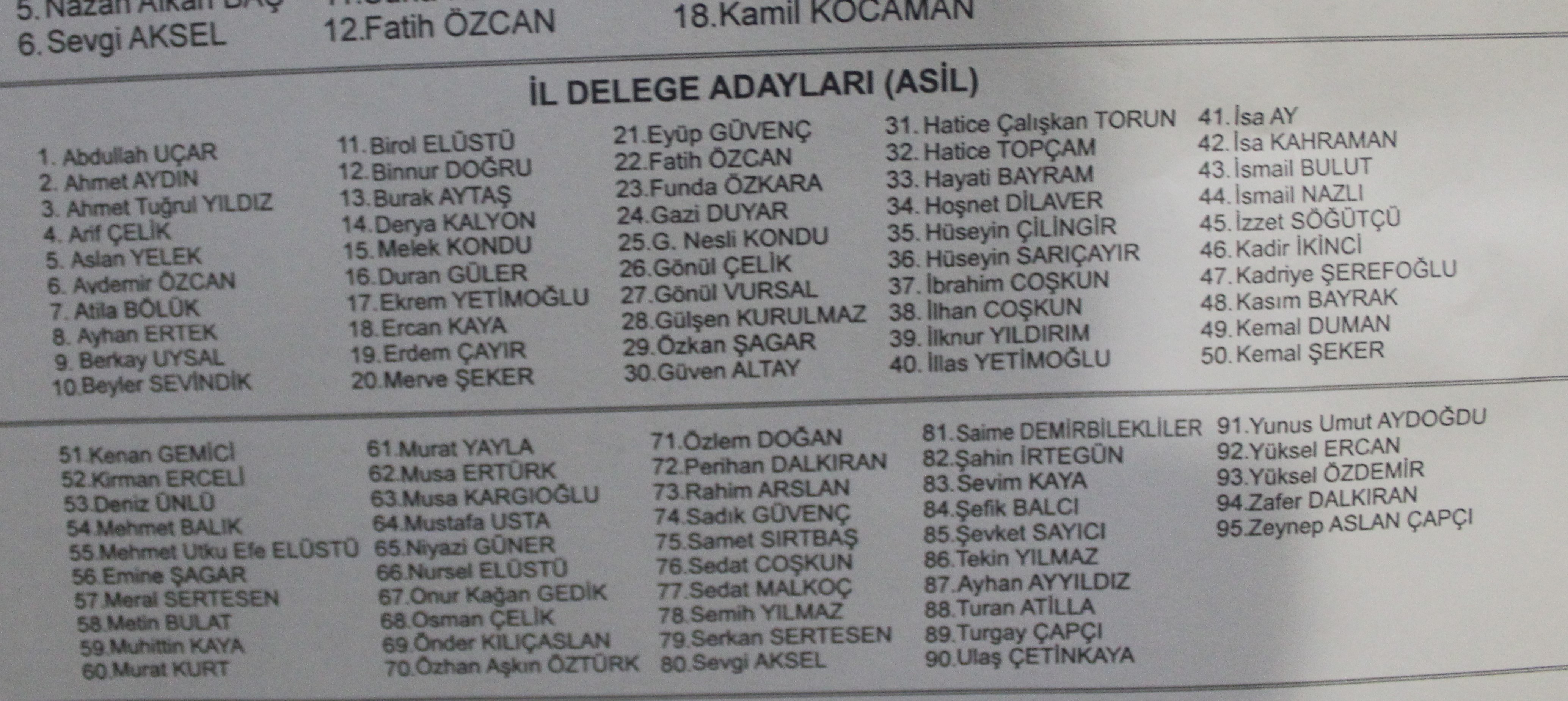 Gebze Belediyesi Nikah Salonları, Salon Kardelen’deki kongrede divan Gebze İlçe kurucu başkanı Nusret Acur başkanlığında Özhan Aşkın Öztürk, Buğra Yiğit Kılıç ve Didar Göçoğlu’ndan oluştu.