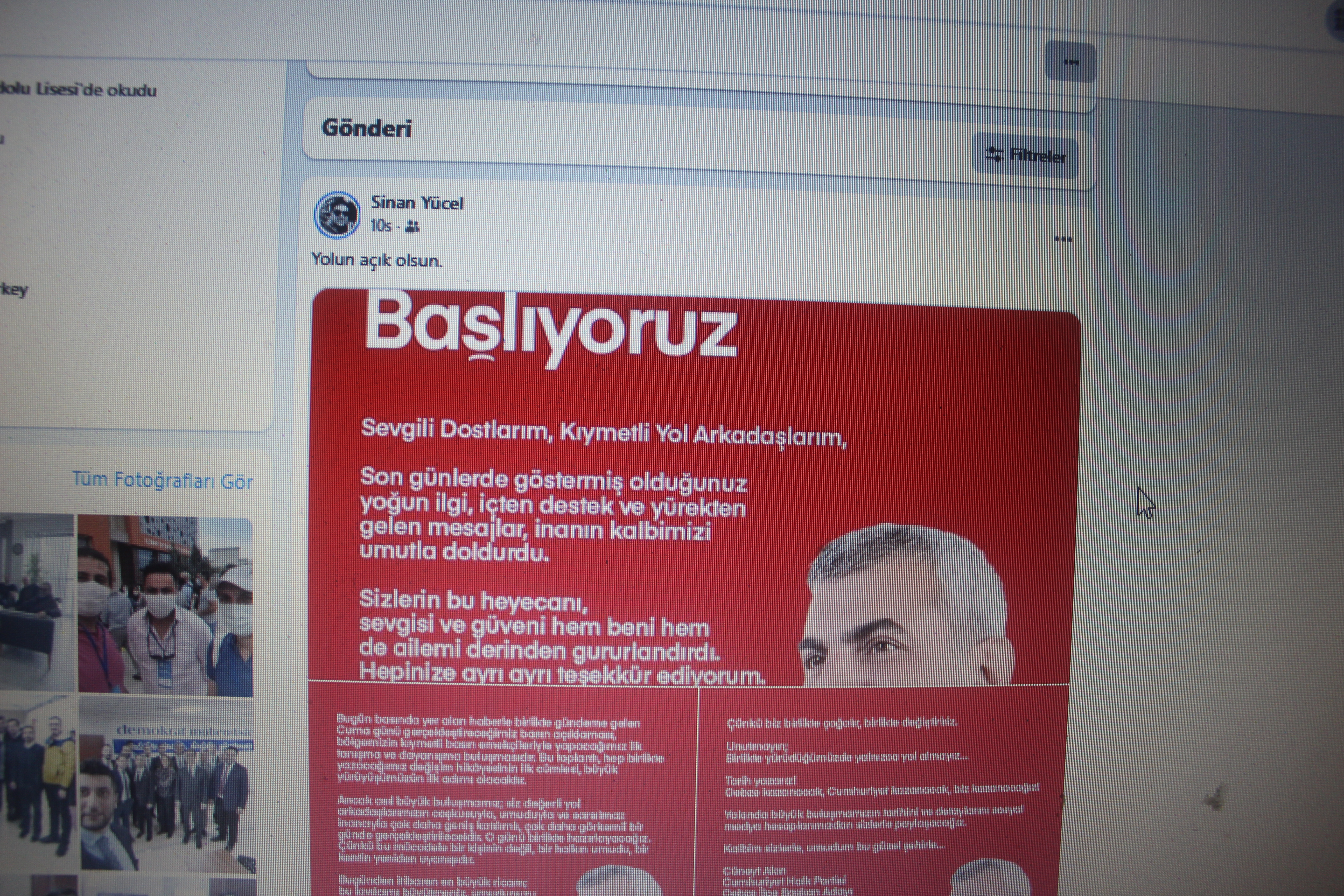 Ancak asıl büyük buluşmamız; siz değerli yol arkadaşlarımızın coşkusuyla, umuduyla ve sarsılmaz inancıyla çok daha geniş katılımlı, çok daha görkemli bir günde gerçekleştirilecektir. O günü birlikte hazırlayacağız. Çünkü bu mücadele bir kişinin değil, bir halkın umudu, bir kentin yeniden uyanışıdır.