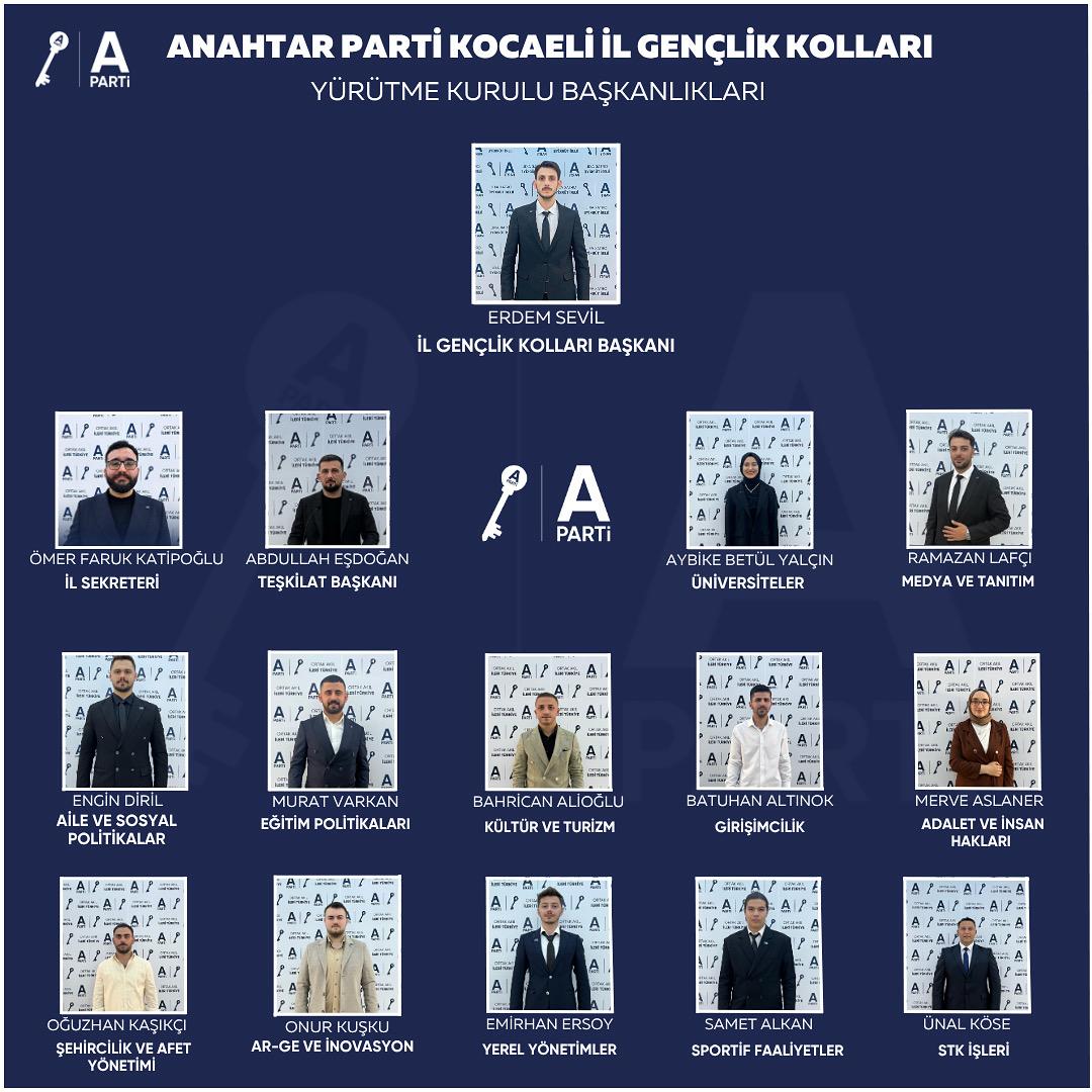 “Her bir ferdinden ayrı ayrı gurur duyduğum, ahlak ve özveri abidesi teşkilatımızın, Anahtar Parti Kocaeli İl Gençlik Kolları Yürütme Kurulunu milletimizin takdirlerine sunarım. Kocaeli siyasetinde, Genel Başkanımız Yavuz Ağıralioğlu’nun ifadesiyle “Liyakatli Şöhretsizlerle” oluşturduğumuz gençlik kolları il yürütme kurulumuz; başta şehrimize ve Türk siyasetine hayırlı olsun. Sürecin başından beri özenle seçip hazırladığımız bu gençlik kadrosu, öncelikle ilimizin ardından ülkemizin problemlerine çözüm üretme noktasında tüm gençlik teşkilatlarına örnek ve yol gösterici olacaktır. Hedefimiz; hem sahada hem masada çözüm bulan, ilimizin ve ülkemizin problemlerine politik argümanlar üretebilen, dinamik ve ahlaklı teşkilat yapısını sürdürmektir.”