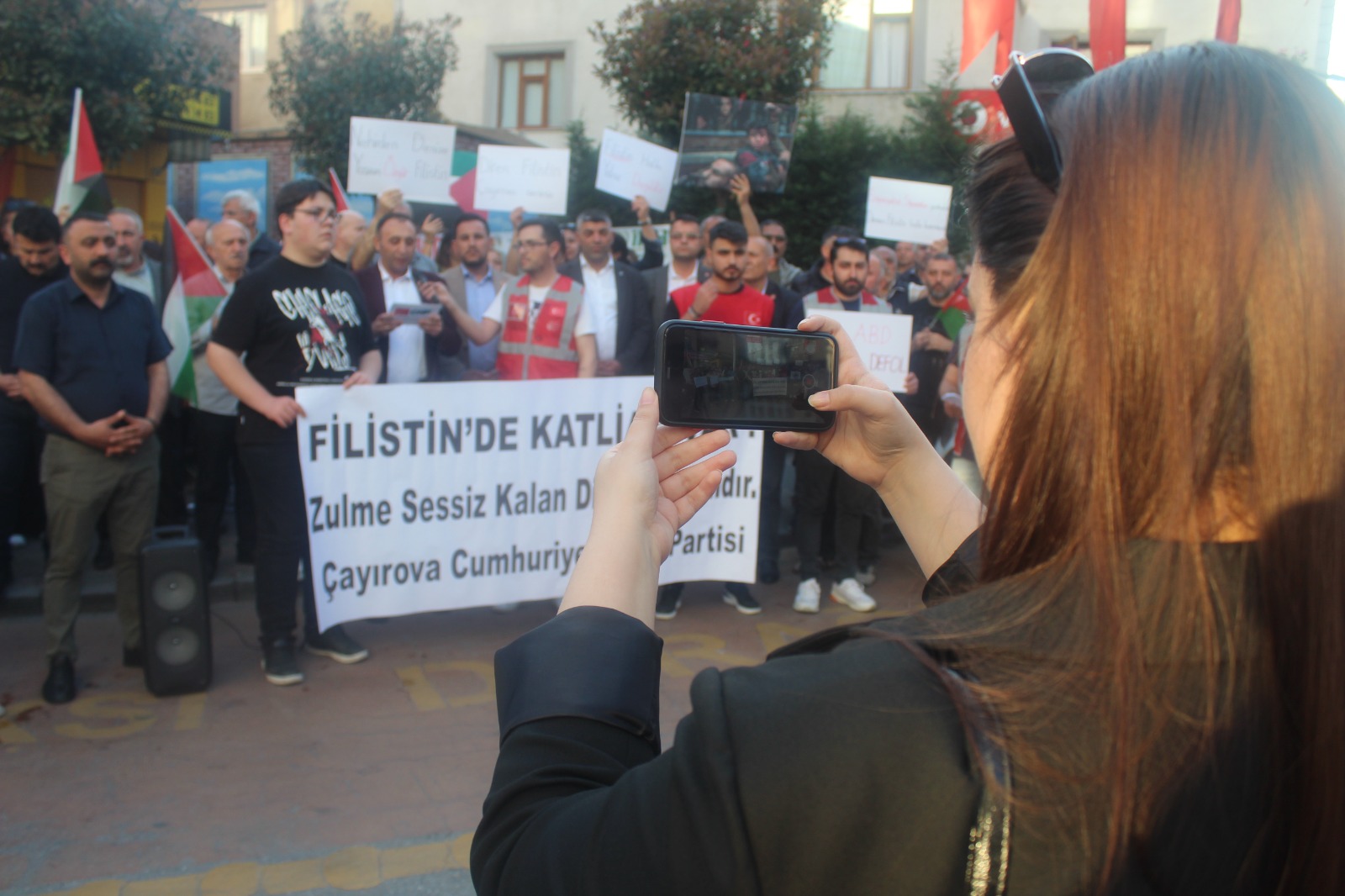 CHP Çayırova Gençlik Kolları üyesi Aras Nesim Arslan’ın kısa bir açış konuşmasıyla başlayan basın açıklamasında CHP Çayırova İlçe Örgütü, “Filistin’de katliam var. Zulme sessiz kalan dilsiz şeytandır” yazılı büyük boy döviz açtı. “Diren Filistin Çayırova seninle”, “Filistin’de düşene, direnene bin selam” sloganlarının atıldığı basın açıklamasında partililer “Nehirden denize yaşasın özgür Filistin”, “Yurtta barış dünyada barış”, “Filistin halkı yalnız değildir” ve benzeri yazılı dövizler de taşıdı. İlçe Başkanı Binali Eniş açıklamada ayrıca şu görüşlere yer verdi: