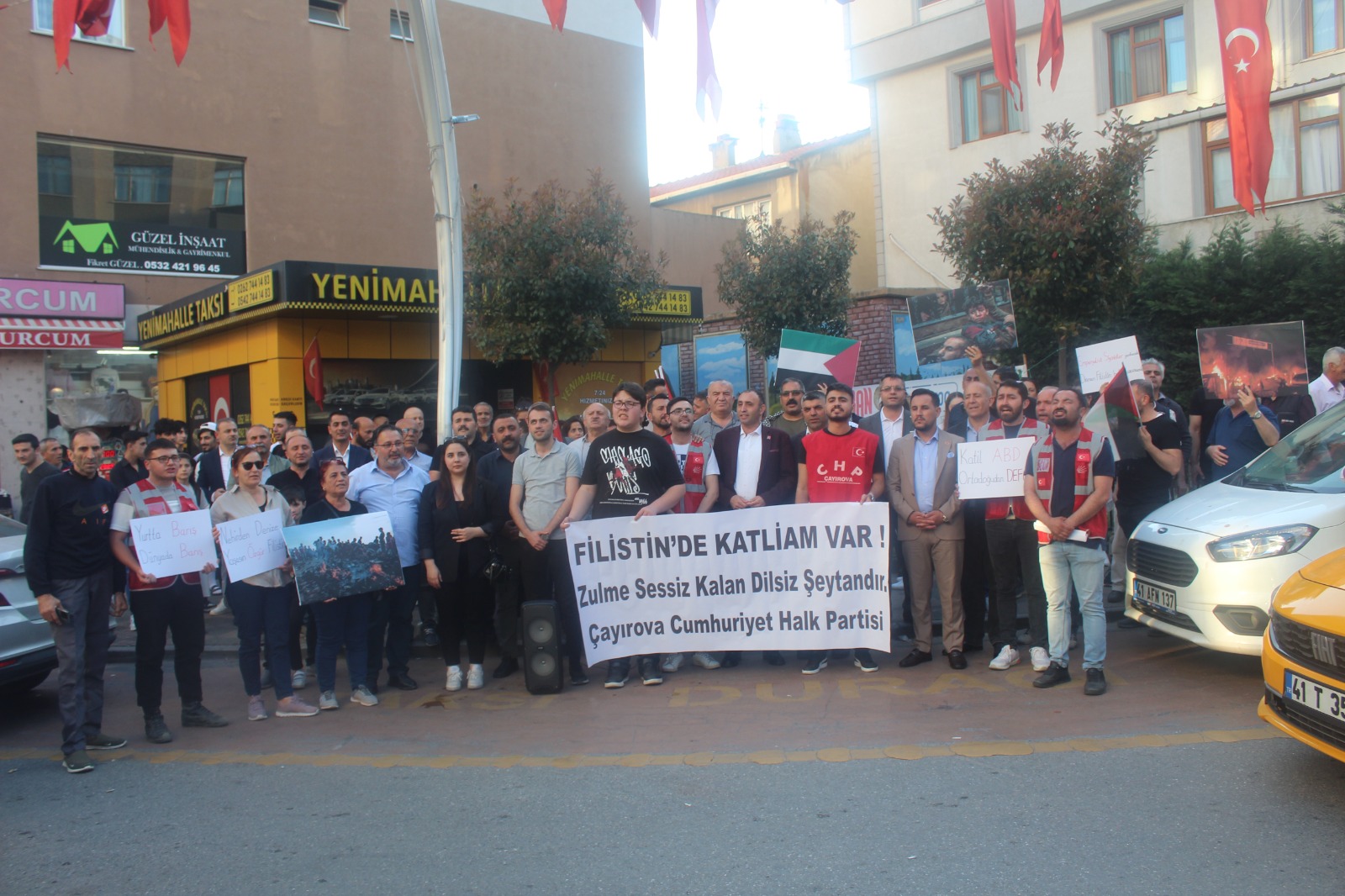 Cumhuriyet Halk Partisi – CHP Çayırova İlçe Örgütü, İsrail’in Filistin işgalini ve Gazze’deki soykırım boyutundaki faşizmini Fatih Caddesi üzeri, Yenimahalle Taksi Durağı önündeki meydanda basın açıklaması ile kınadı. CHP Çayırova İlçe Başkanı Binali Eniş, “Kurtuluş Savaşı yıllarından bizi, 1969’dan Deniz Gezmiş ve arkadaşlarını örnek gösterip, “Yaptığımızı, Filistinliler de yapabilir” dedi: