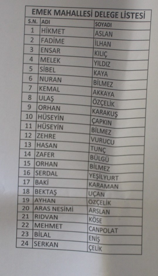 Delege listesi fotoları, Binali Eniş listesinden seçilen delegeleri içermektedir.