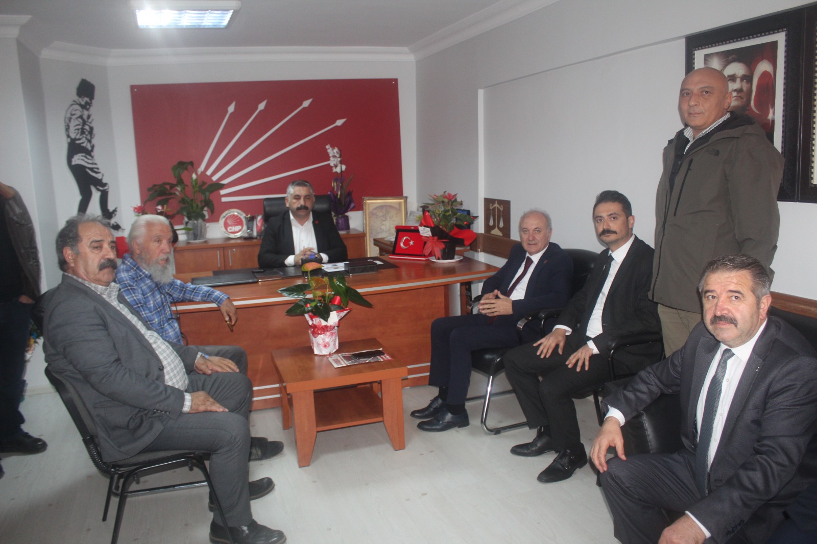 Arcan’a Gebze İlçe Örgütü’nü ziyaretinde il yönetiminin Gebzeli üyeleri Bülent Apaydın ve Erhan Bölük, Darıcalı üyesi Fahrettin Akıncı ile Caner Arduç, Mehmet Ali Karadeniz, Caner Boztepe, Nurşah Kaptan, Metin Başlılar, Murat Özer ve Aykut Çelik eşlik etti.