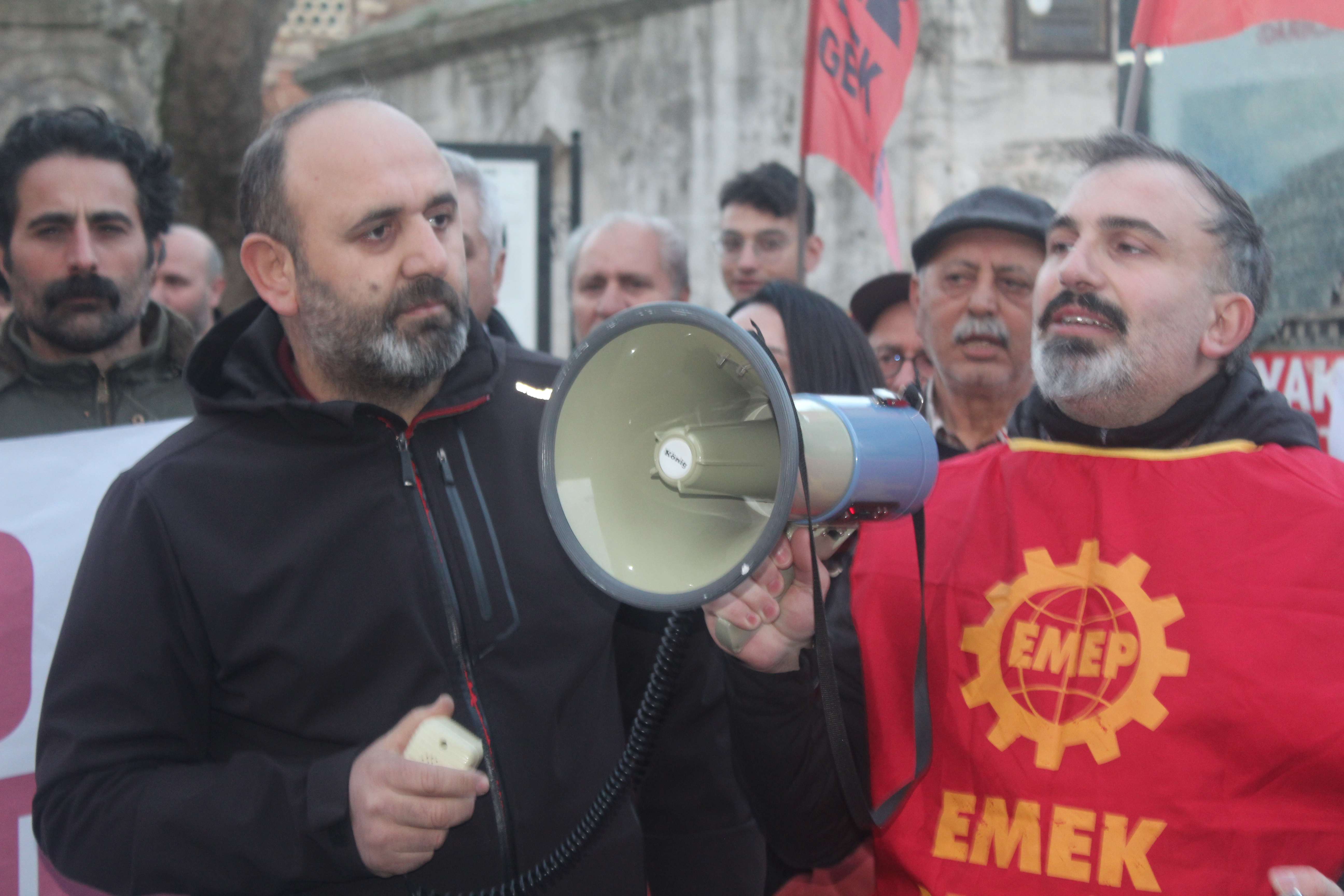 Gebze Tarihi Çeşme önünde konuşan EMEP Genel Başkanı Seyit Aslan, Erzincan İliç’te yaşanan katliamı hatırlatarak sözlerine başladı. "Bugün 9 işçi arkadaşımız milyonlarca ton toprağın altında ve orada bulunan bakanlar her an yeni göçükler olabilir diyerek arama çalışmalarına son veriyorlar" diyen Aslan, "Oysa ki bu pasa dağının çökeceğini orada çalışan arkadaşlarımız haftalar önce müdürlerine, amirlerine söylediler. Şirketin işçileri canı pahasına nasıl çalıştırdığına dair, defalarca kez ceza almalarına rağmen şu an İstanbul Büyükşehir Belediye Başkan adayı olan, o dönem Çevre ve Şehircilik Bakanı olan Murat Kurum eliyle bu şirkete kapasite artırımı için ruhsat verildiği bilirkişi raporlarıyla da ortaya çıktı. 9 işçinin katili bu sistemdir. Bu sistemi işletenlerin yakasına yapışacağız kaybedilen işçilerin hesabını soracağız" dedi.