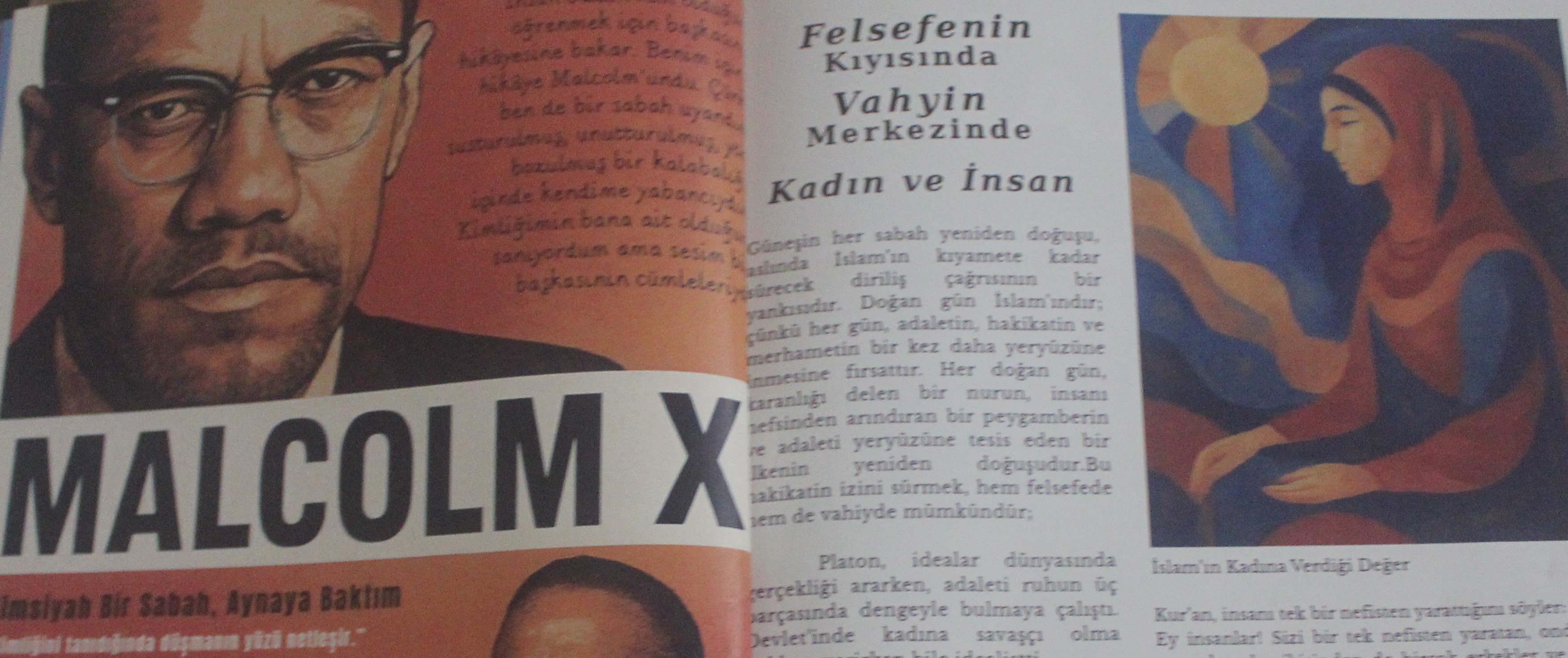 Derginin iki ve üçüncü sayfalarında ise girizgâhta değindiğimiz, Ve’l Asr kelimeleri ile ayakta ve düşünür halde, genç insan silueti yer alıyor.