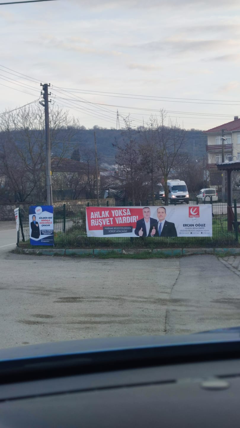 Geçtiğimiz ay Dilovası’nın her mahallesinde yaptığımız pankart çalışmaları oldu. Buna istinaden bazı köylerde ve mahallelerde birebir saldırılar gerçekleşmiştir. Bunlardan biri de Dilovası, Köseler Köyü’ndeyiz. Pankartımız tam da ‘şurada’ (YRP Dilovası Belediye Başkan adayı Ercan Oğuz’un pankartının olduğu yeri göstererek) yer almaktaydı. Pankartımız buradan alınıp tam da şuraya (Kendi pankartının asıldığı yeri göstererek) uygunsuz ve sağlıksız bir şekilde asılıp konulmuştur.