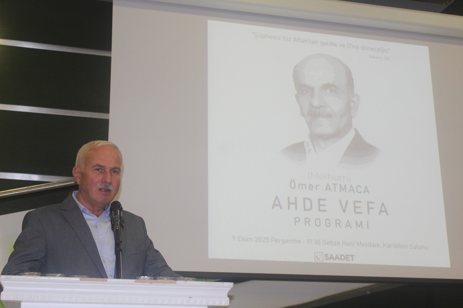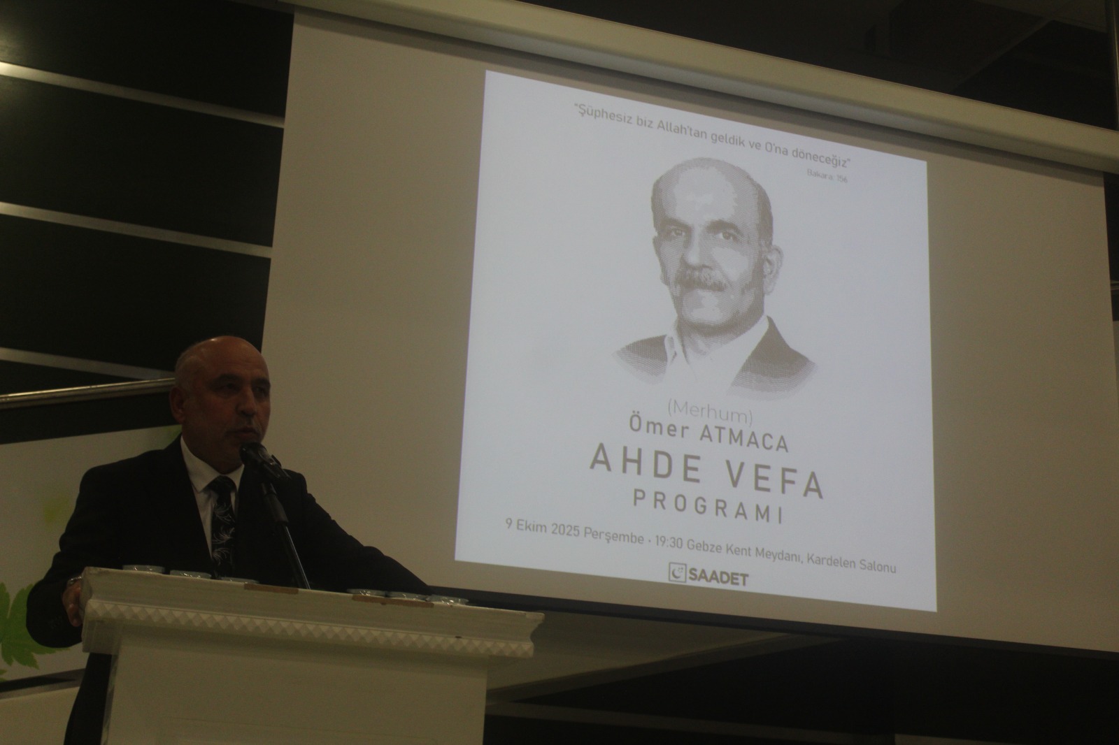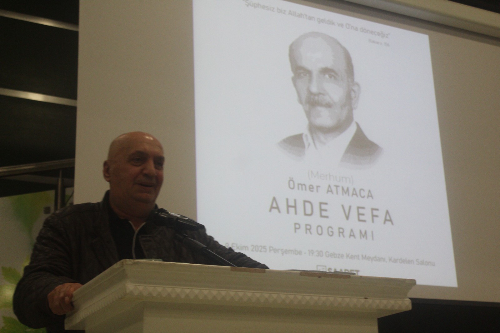Ömer Atmaca kimine göre bir abi, kimine göre bir ilçe başkanı, kimine göre gönül insanı, kiminin eşi, kiminin babası ve buradaki herkesin ortak değeri olan Ömer abi için biz Saadet Partisi Gebze İlçe Teşkilatı olarak vefatından ötürü ahde vefa gecesi düzenleyeceğiz. Katılımlarınızdan ötürü hepinize ayrı ayrı teşekkür ediyorum.