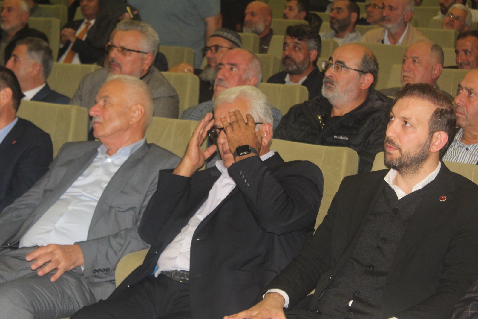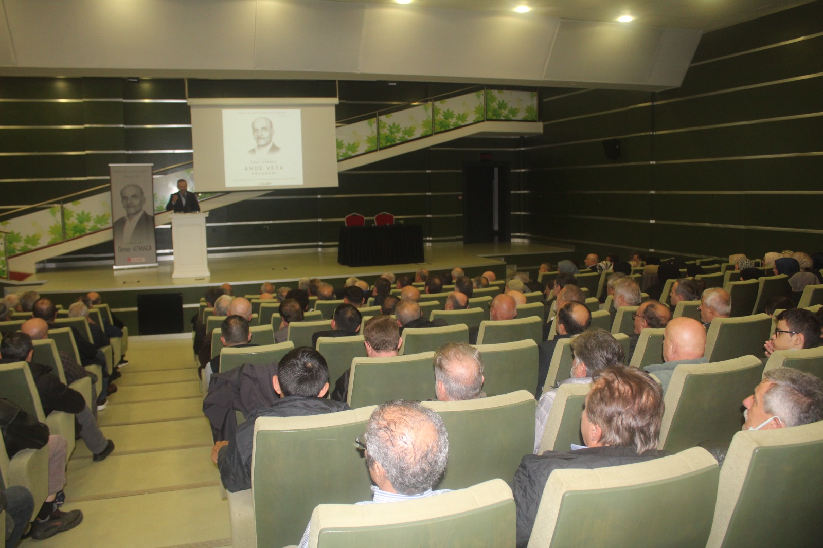 Programa Milli Görüş camiası da çok büyük ilgi gösterdi. 200 kişi kapasiteli Kardelen Nikah Salonu’nun tamamına yakını dolarken Saadet Partisi’nden beldelik dönemi Şekerpınar Belde Başkanı Mustafa Kaya geçirdiği bir rahatsızlıktan ötürü hava muhalefetine de aldırmadan değnekle geldi.